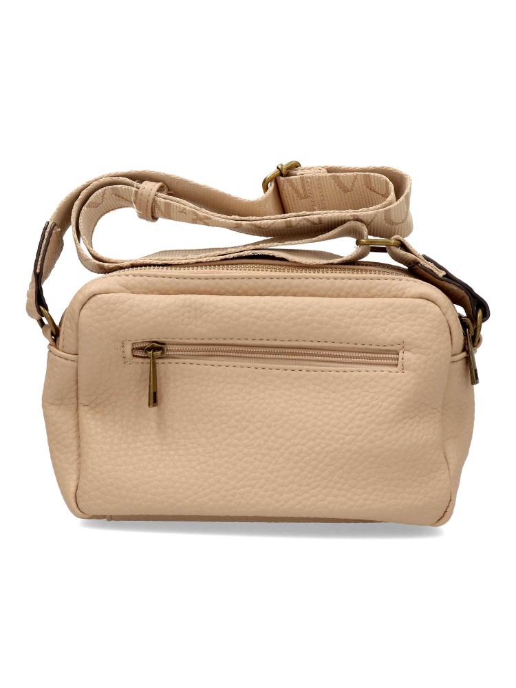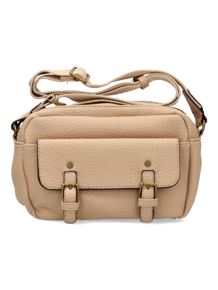 Bolso bandolera de mujer en color beige. Cierre de cremallera. Medidas aproximadas: 22cm (largo) x 6cm (ancho) x 14cm (alto)