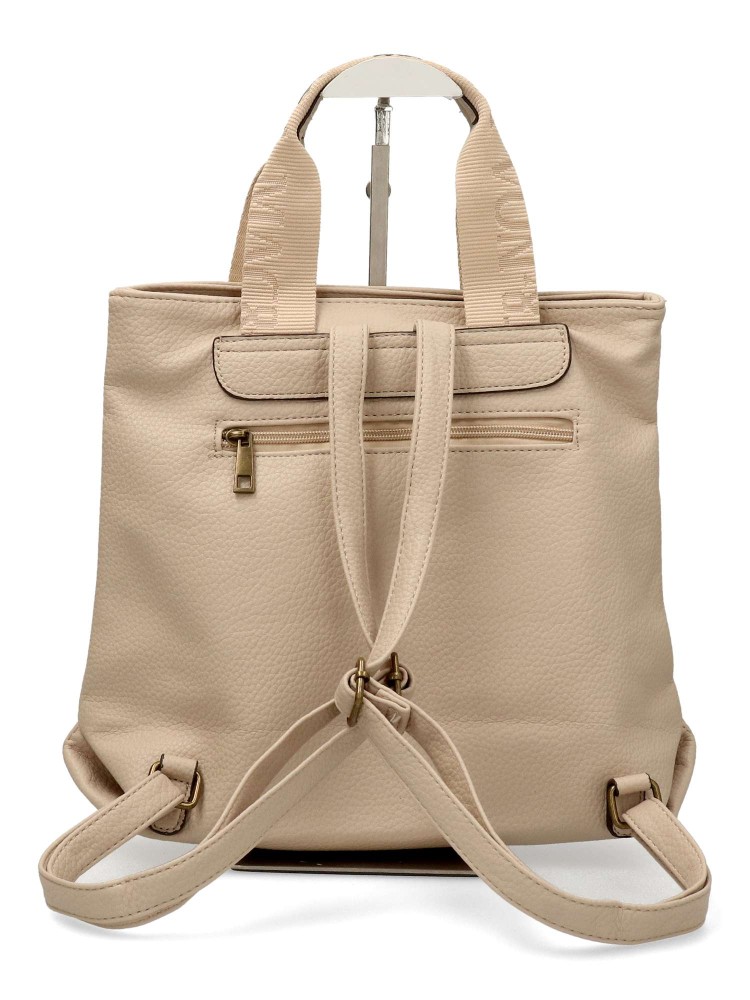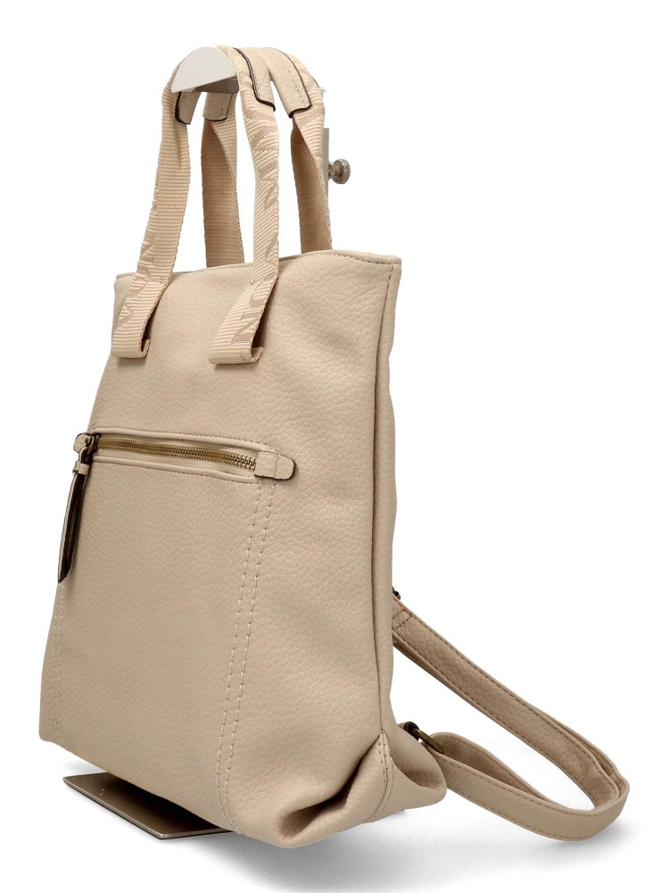 Bolso mochila de mujer en color beige. Asas regulables. Cierre de cremallera. Medidas aproximadas: 32cm (largo) x 10cm (ancho) x 29cm (alto)