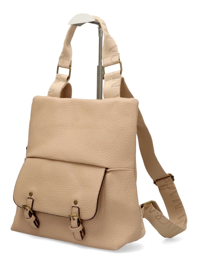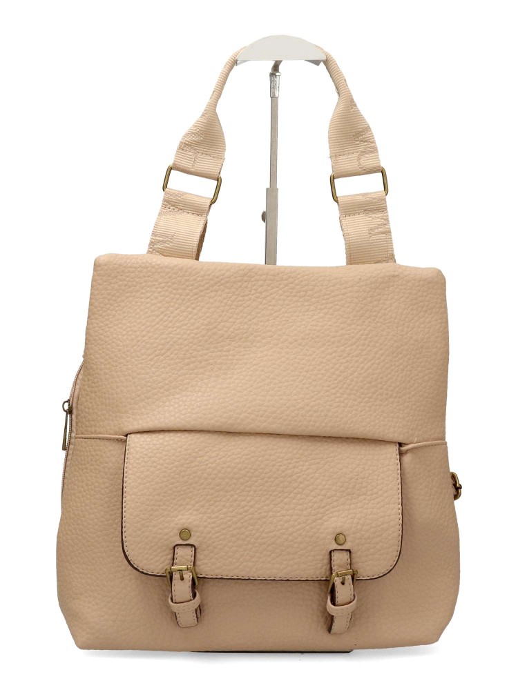 Bolso mochila color beige. Asas regulables para mayor comodidad. Medidas aproximadas: 31cm (largo) x 12cm (ancho) x 28cm (alto)