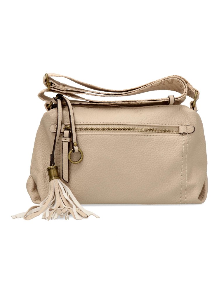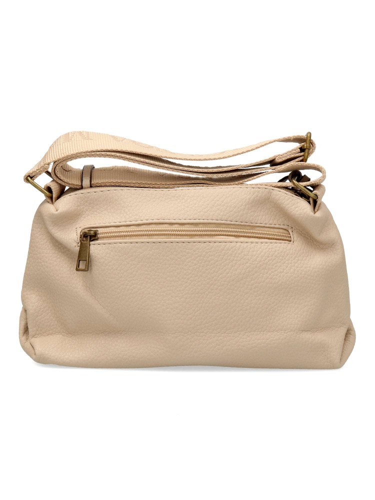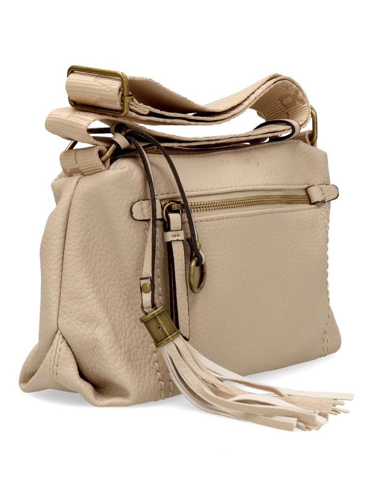 Bolso bandolera de mujer color beige. Cierre de cremallera. Medidas aproximadas: 27cm (largo) x 5cm (ancho) x 16cm (alto).