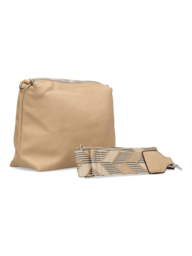 Bolso bandolera de mujer en color beige. Cierre de cremallera. Medidas aproximadas: 30cm (largo) x 10cm (ancho) x 20cm (alto)