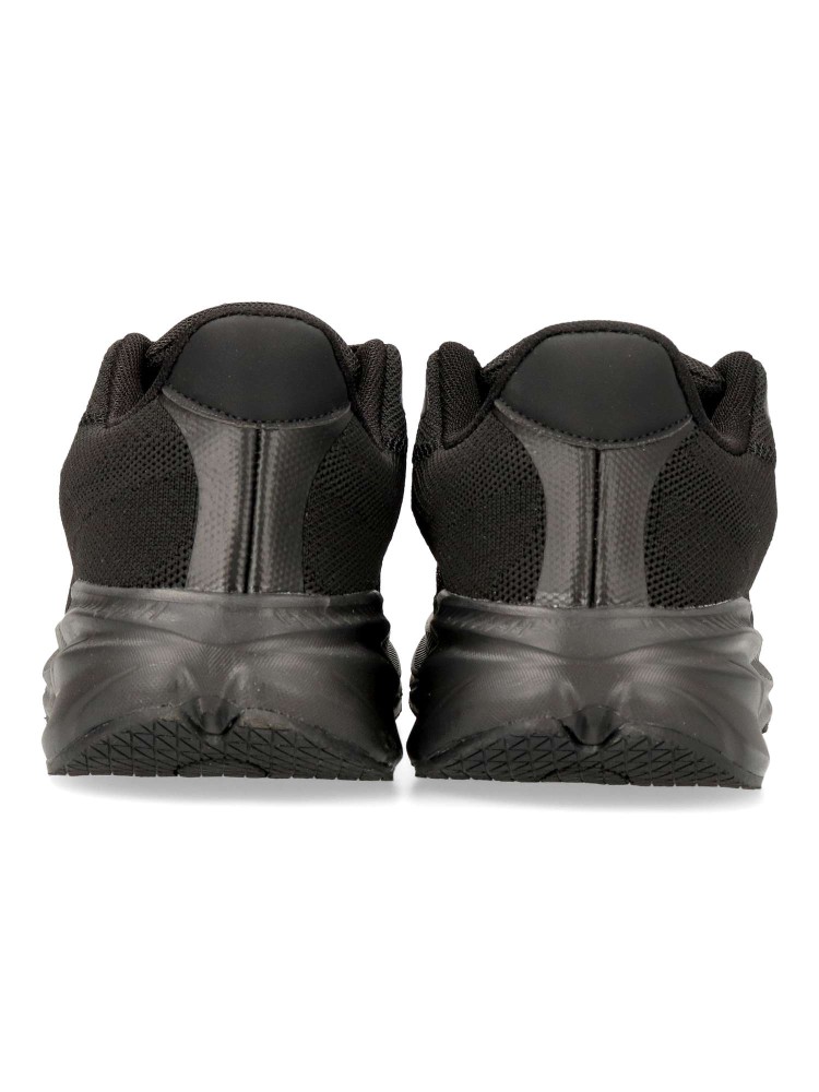 Zapatilla de marcha deportiva. Cierre de cordones. Modelo cómodo, fabricado en textil, con suela de goma ligera y flexible. Color negro. Plantilla acolchada y extraíble. Deportiva cómoda, ligera y traspirable para mayor confort en tu día a día.