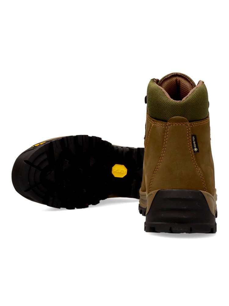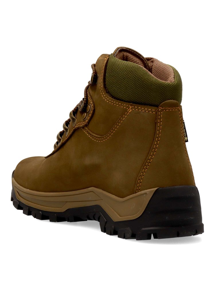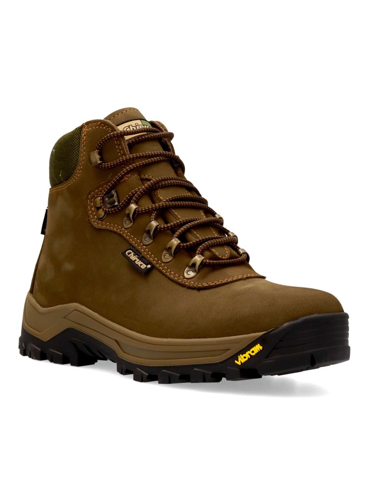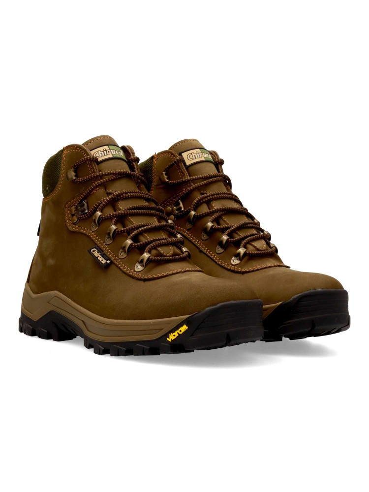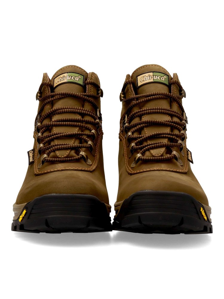 Bota trekking-caza Chiruca de hombre, fabricada en piel nobuk hidrofugada con cuello acolchado. Membrana GORE-TEX resiste al agua y al viento, máxima impermeabilidad. Suela Vibram: calidad, rendimiento, seguridad, innovación y diseño. Confort y calidad.