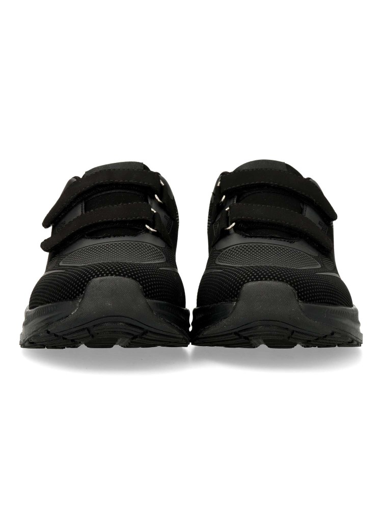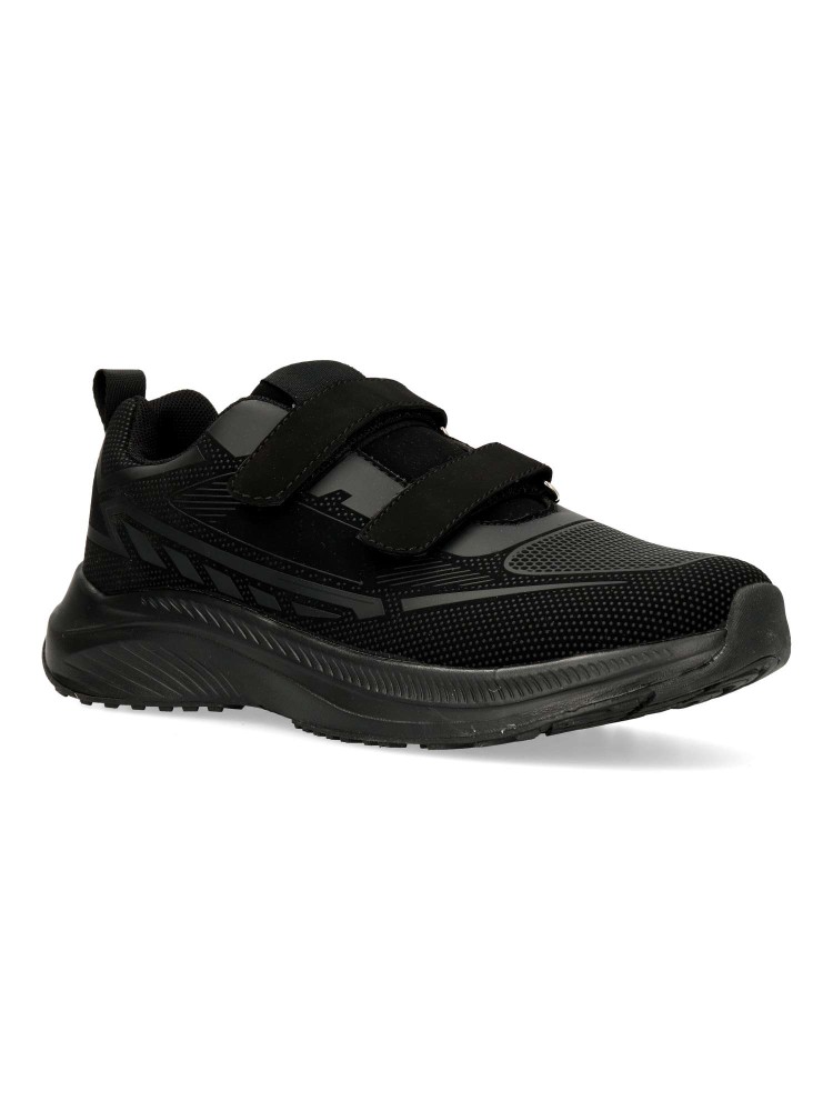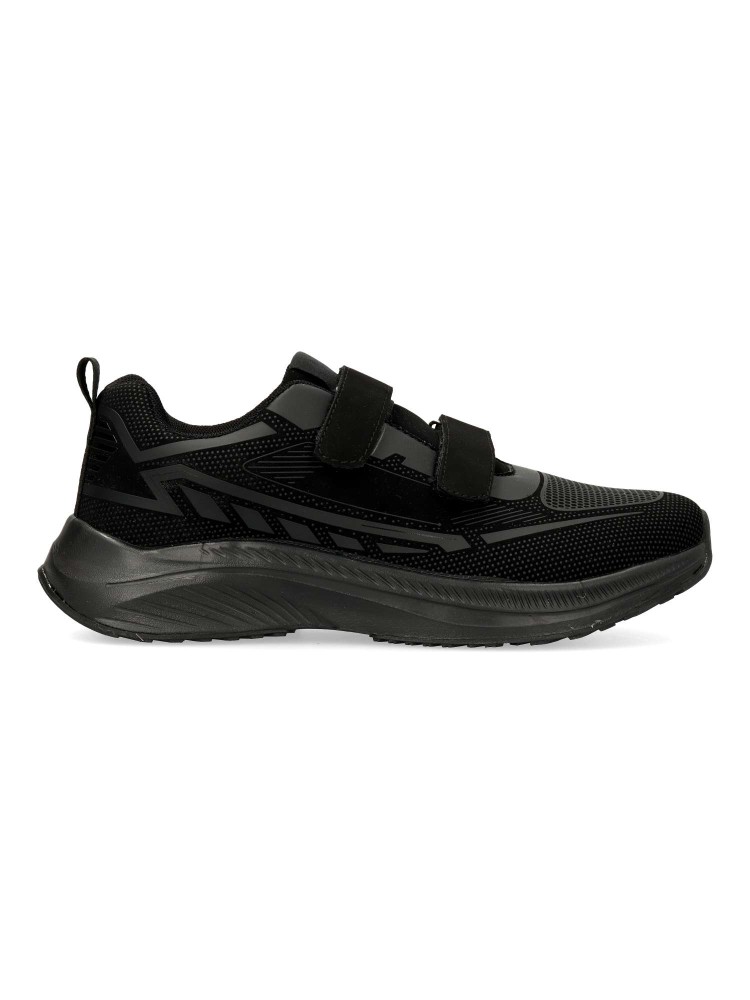 Zapatilla de marcha deportiva, con cierre adherente. Modelo cómodo, fabricado en textil, con suela de goma ligera y flexible. Color negro. Plantilla acolchada y extraíble Memory. Deportiva cómoda, ligera y traspirable para mayor confort en tu día a día.