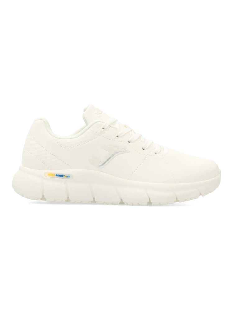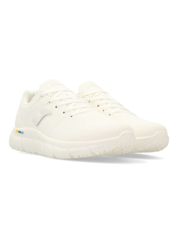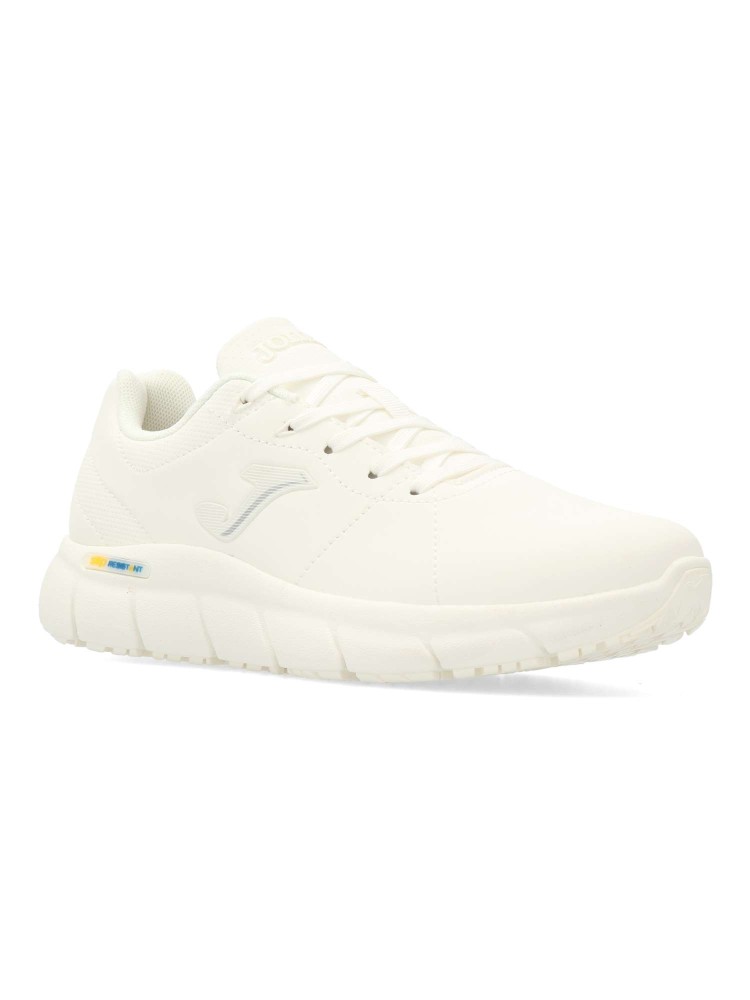 Modelo de tiempo libre, ligero y muy cómodo para el uso diario. Cierre de cordones. Fabricada en material sintético con suela ligera y flexible de caucho. Plantilla Memory Foam. Suela de goma antideslizante: tecnología Slip-Resistant. Color blanco.