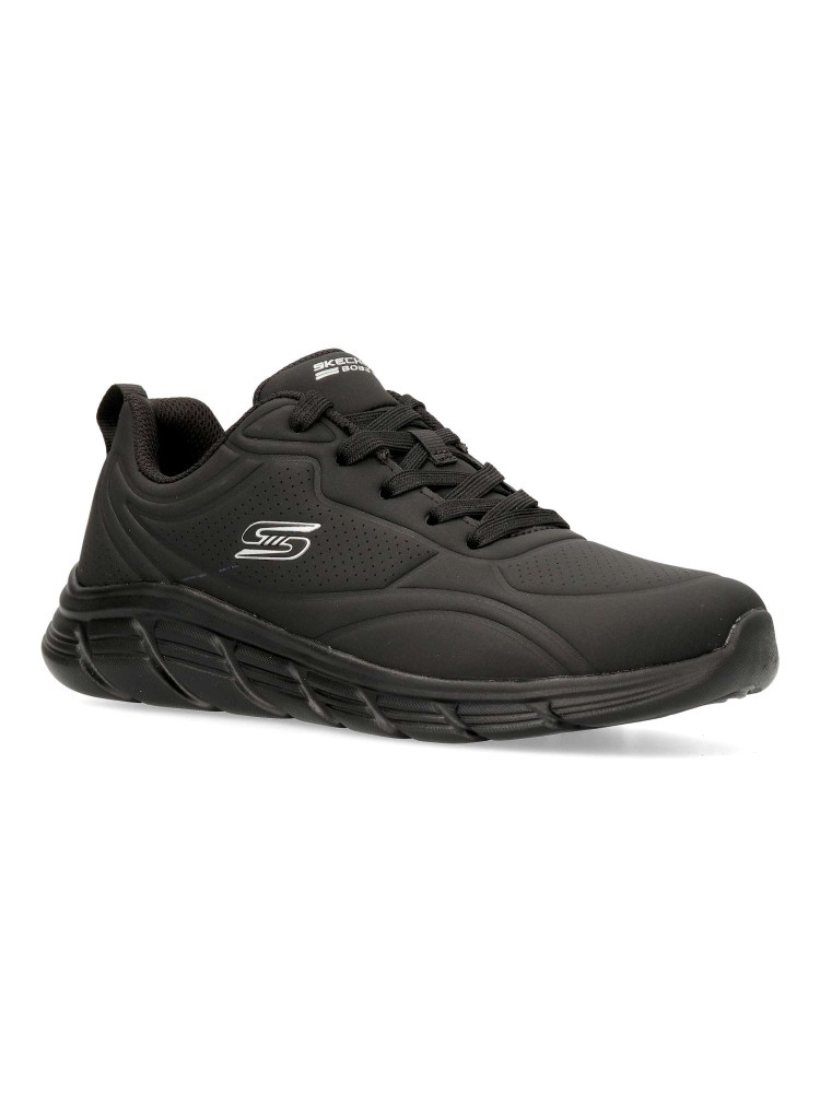 Bobs B Flex Lo - Zapatillas Cool Ease para mujer, color negro. Deportiva sintética con cierre de cordones. Parte superior de diseño elegante con perforaciones y relieve. Forro textil. Plantilla acolchada de espuma viscoelástica Memory Foam.