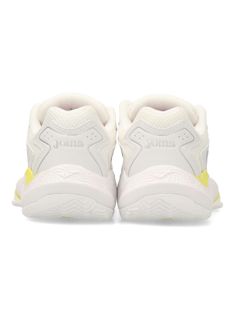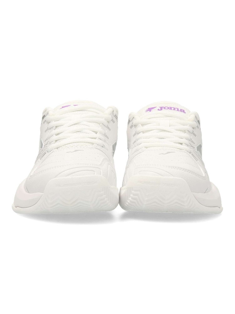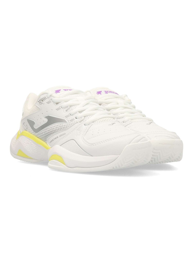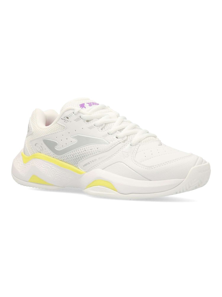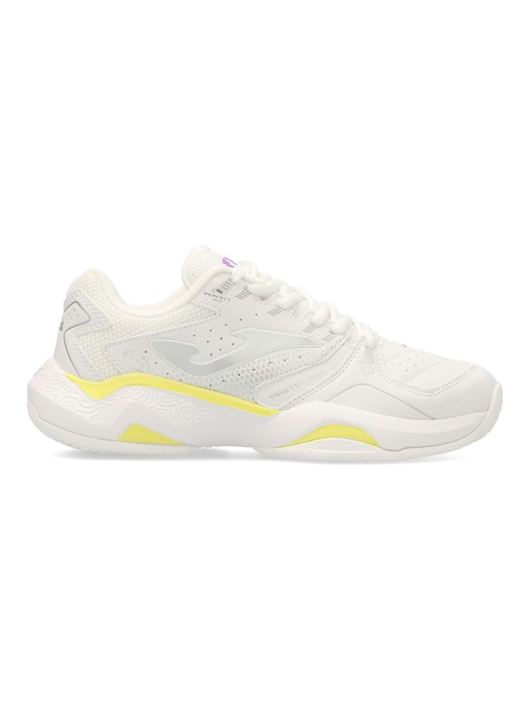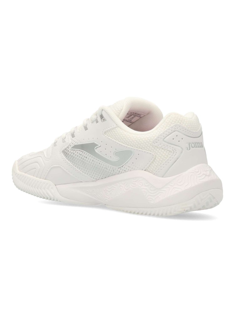 Zapatilla deportiva de mujer para jugadoras de tenis/padel. Cierre de cordones. Fabricado en piel sintética. La plantilla es de EVA lisa. Mediasuela de phylon y suela de caucho. Color blanco-plata. Master 1000 Lady 2502