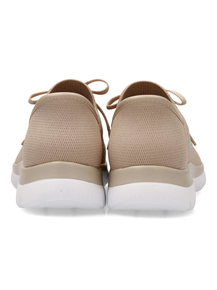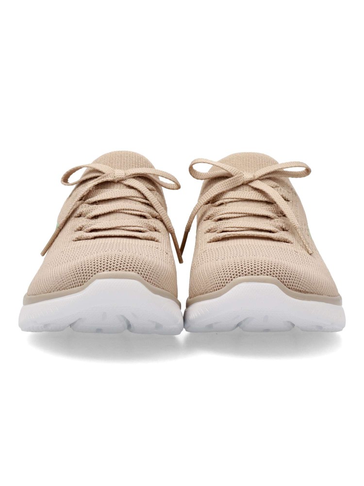 Este modelo vegano, diseñado con nuestro sistema Heel Pillow™, cuenta con una parte superior de tejido knit Stretch Fit® con cordones fijos y una cómoda plantilla con amortiguación Skechers Air-Cooled Memory Foam™.