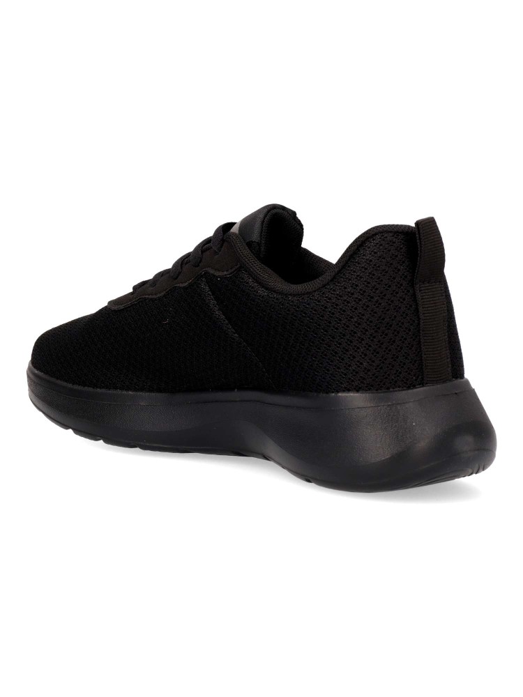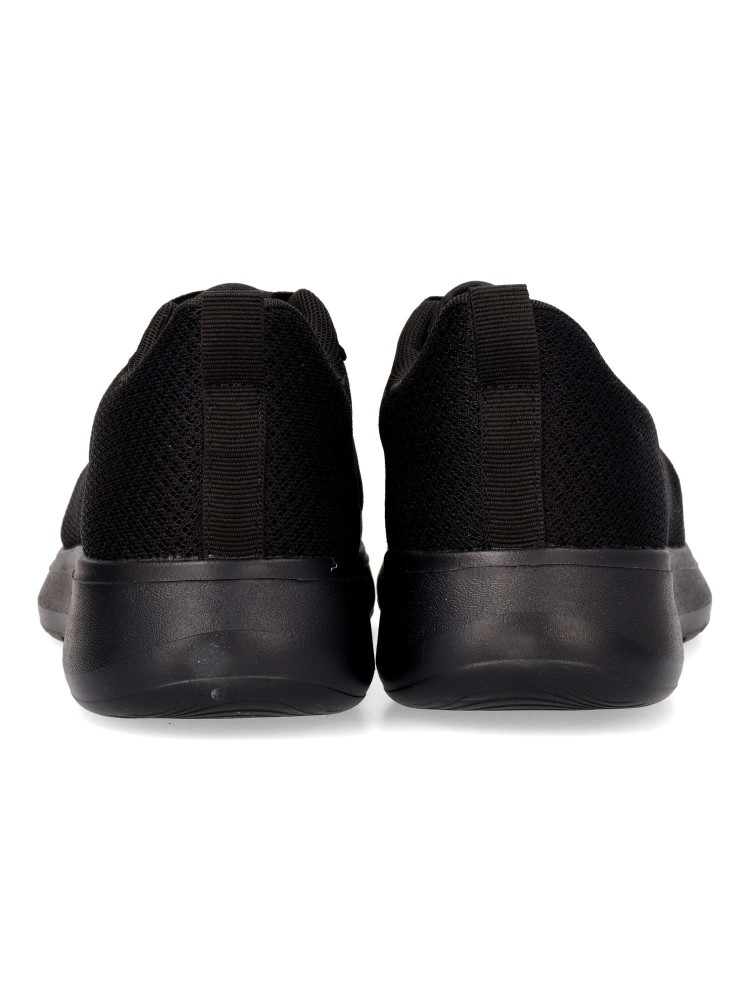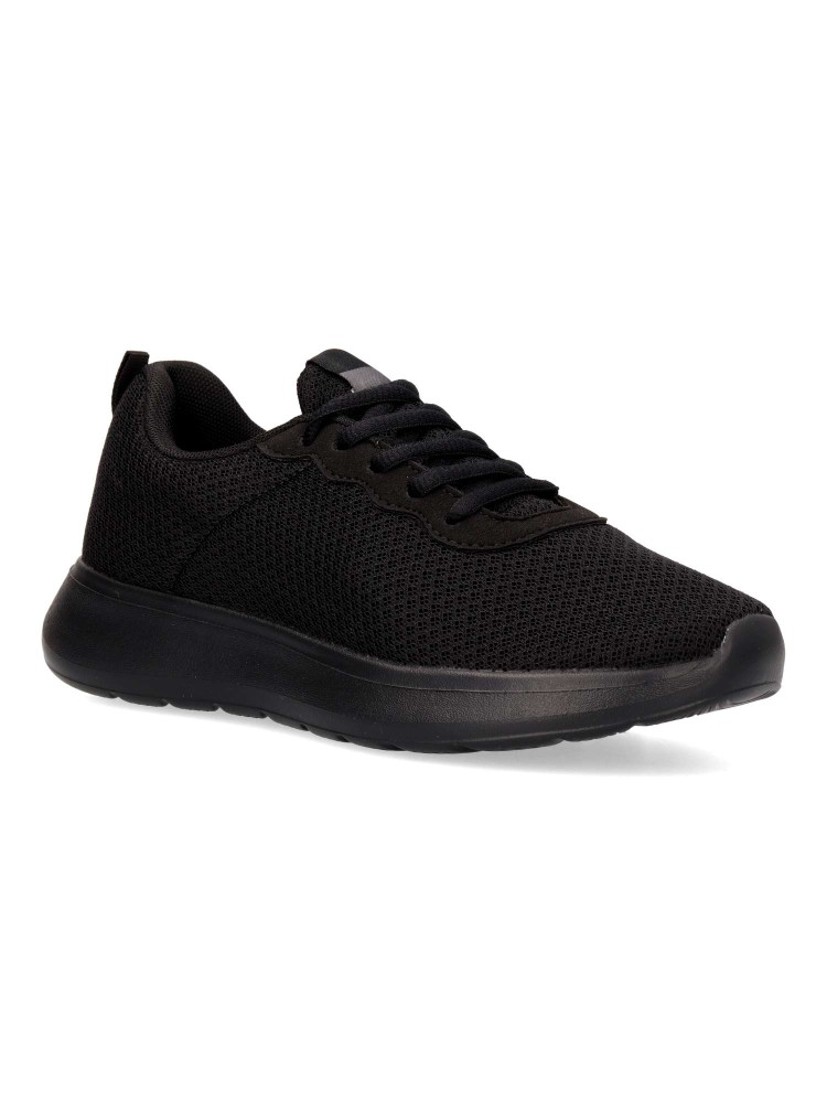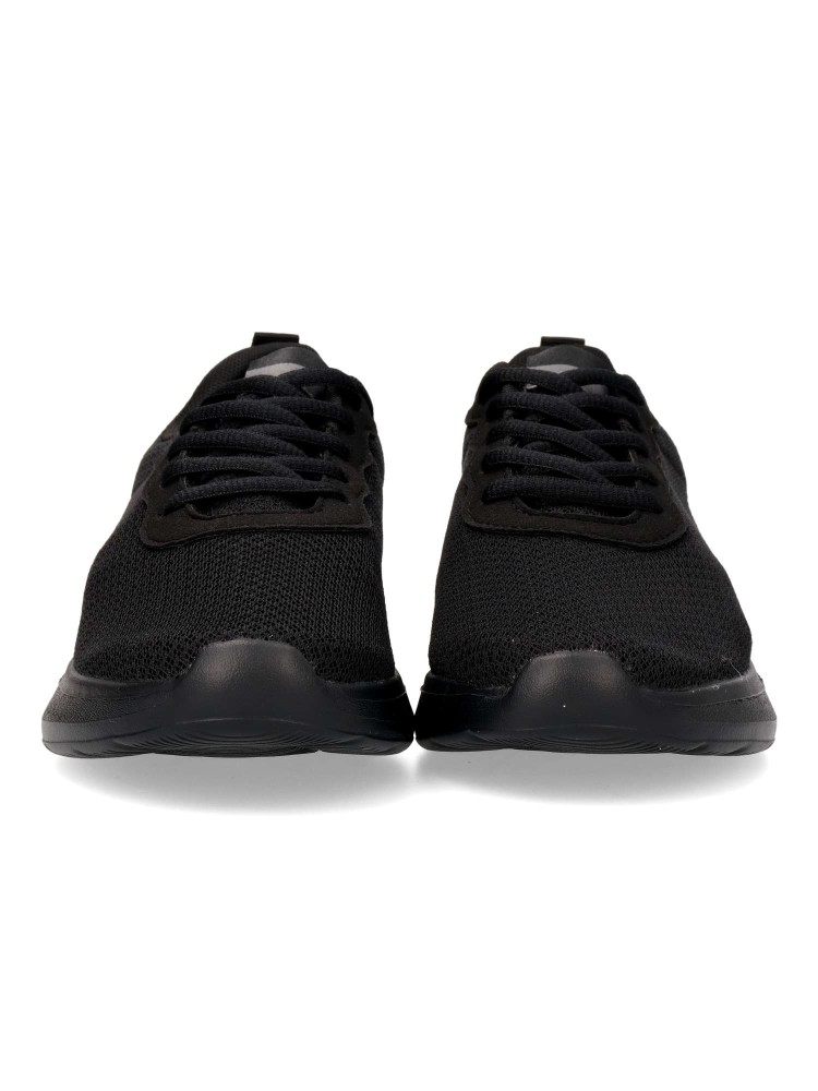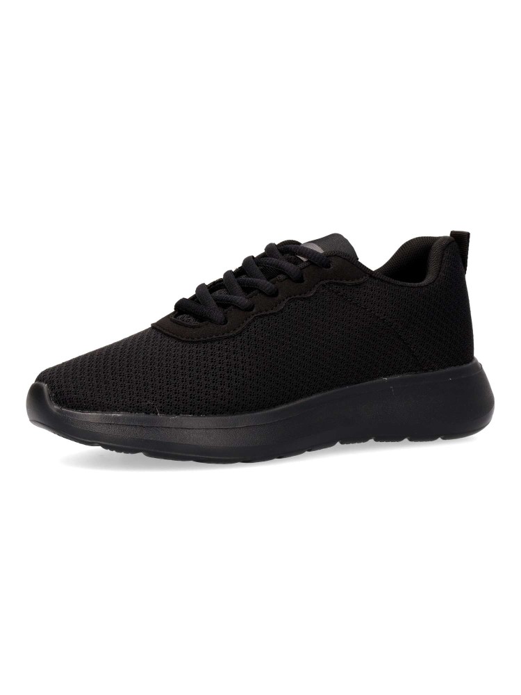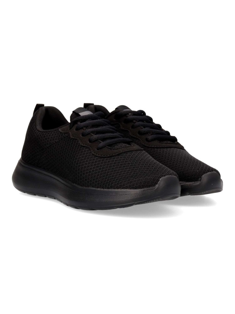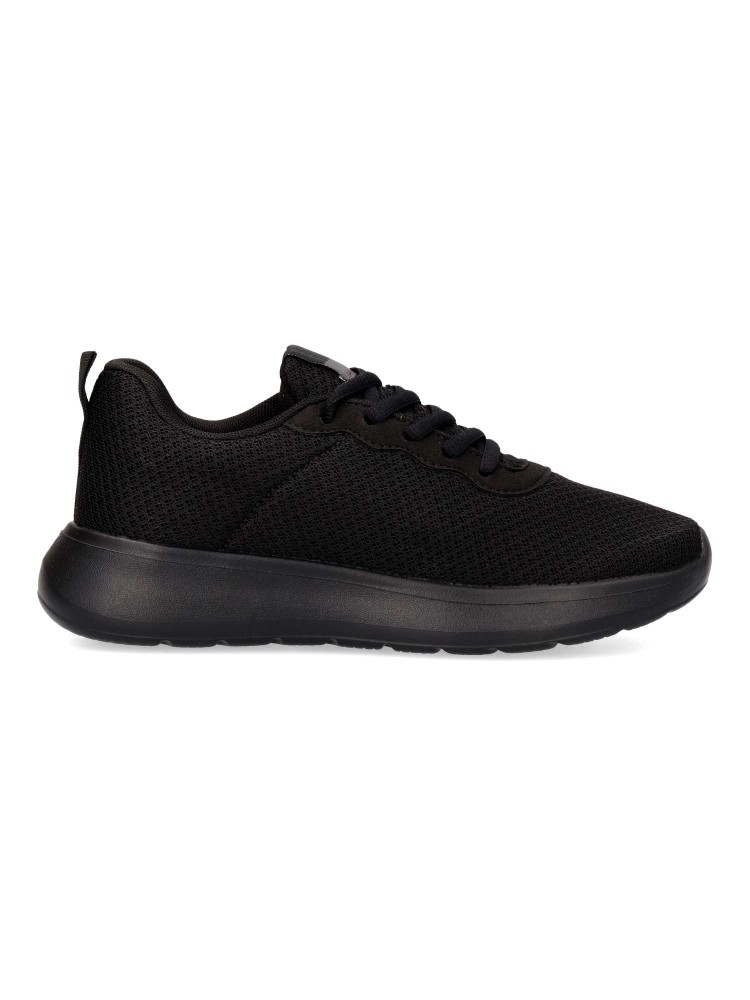 Zapatilla de marcha deportiva. Cierre de cordones. Modelo cómodo, fabricado en textil, con suela de goma ligera y flexible. Color negro. Plantilla acolchada y extraíble. Deportiva cómoda, ligera y traspirable para mayor confort en tu día a día.