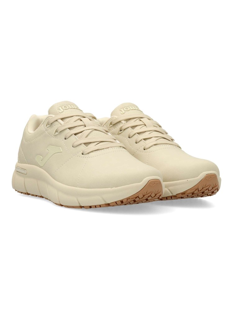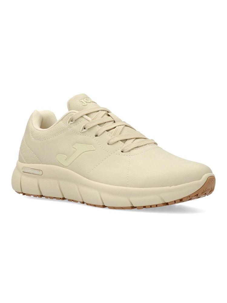 Modelo de tiempo libre, ligero y muy cómodo para el uso diario. Cierre de cordones. Fabricada en material sintético con suela ligera y flexible de caucho. Plantilla Memory Foam. Suela de goma antideslizante: tecnología Slip-Resistant. Color beige.