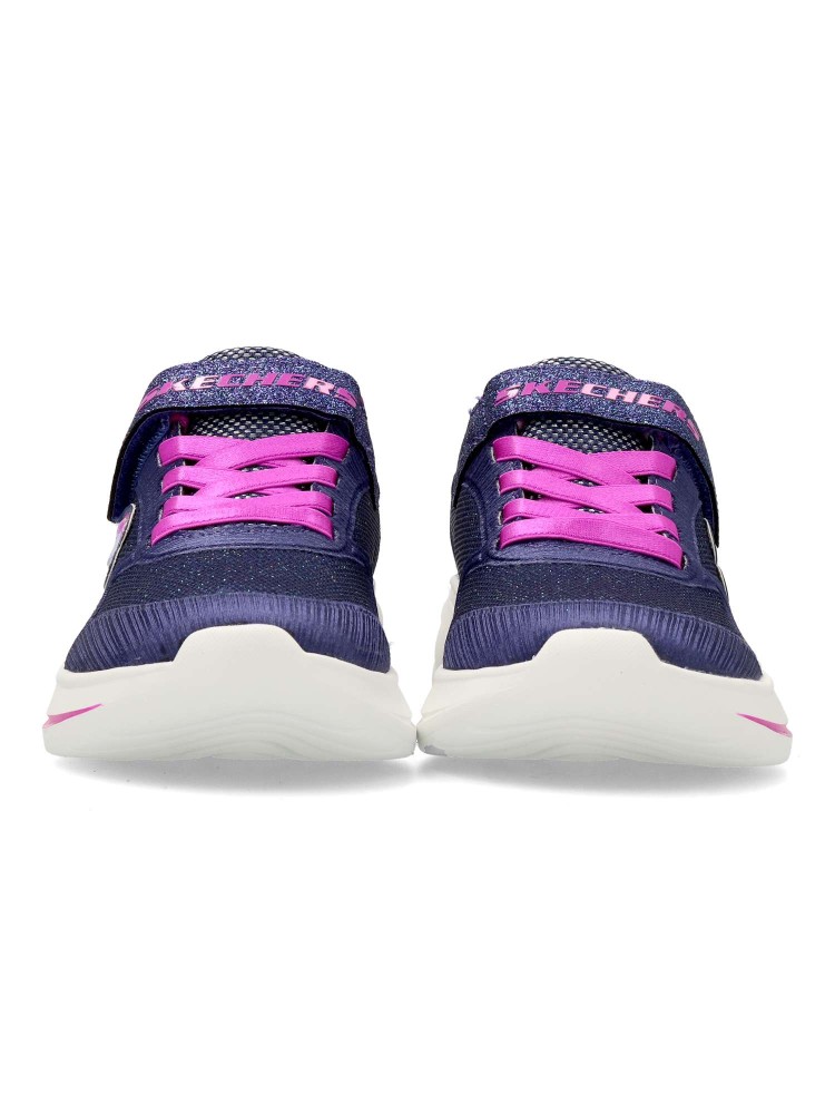 Zapatilla deportiva de niña, con una parte superior de malla brillante con cordones elásticos, un cierre de tira ajustable en el empeine y una cómoda plantilla con amortiguación. Suela flexible con tracción. Labable a maquina.