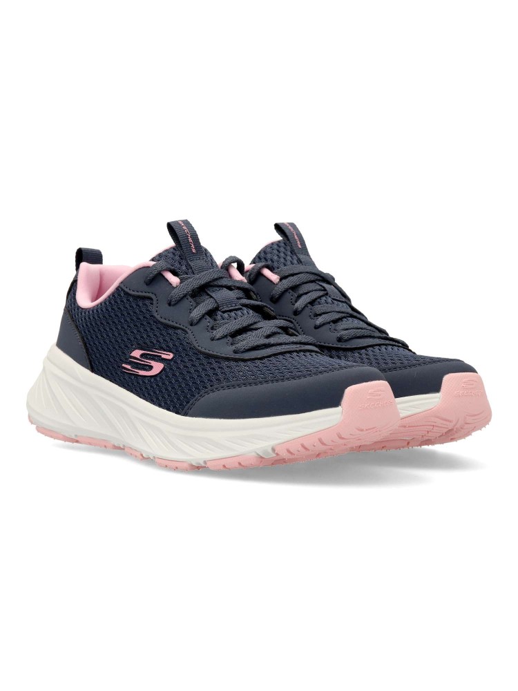 La suela de este modelo está diseñada para resistir el desgaste y cuenta con una parte superior de malla técnica y una capa superpuesta sintética, con cordones en la parte delantera y una suela exterior de goma resistente.