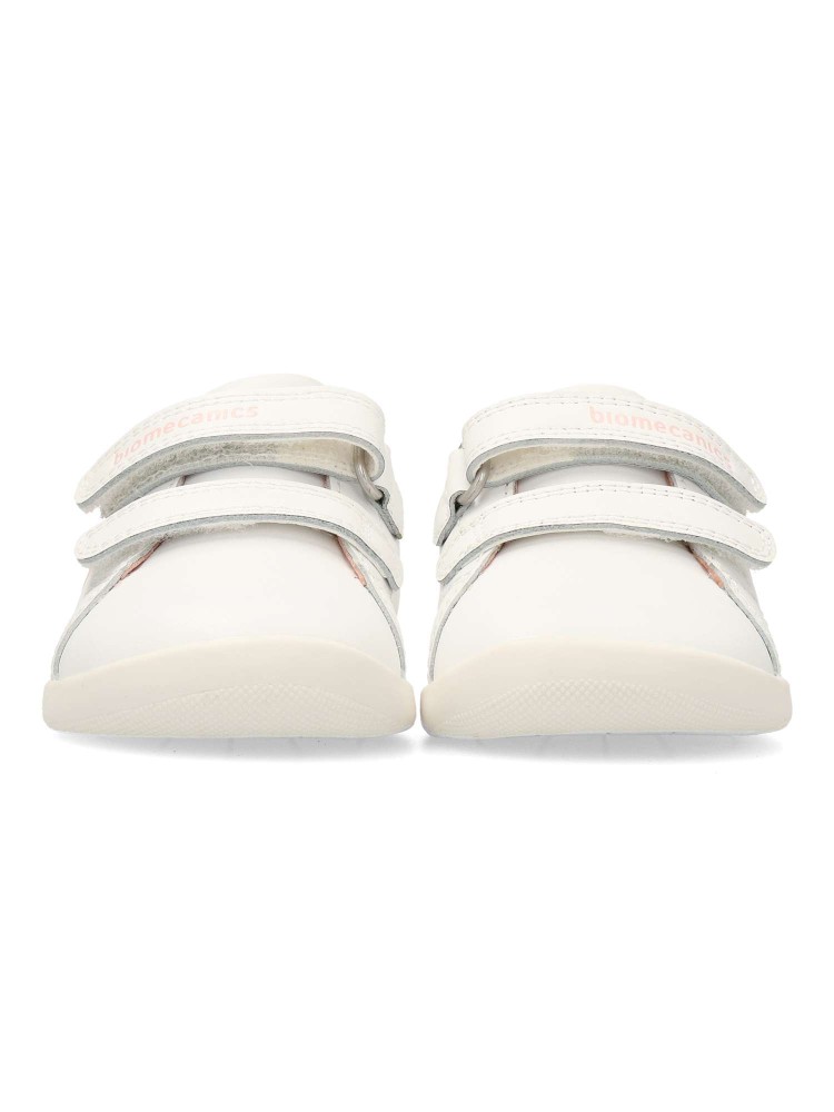 Deportivo casual de piel. Doble cierre adherente. Puntera reforzada. Plantilla acolchada y extraíble. Biogateo: Estabilizador Foam. Creado para que los primeros pasos de nuestros hijos sean cómodos y estables. Respetuoso con el desarrollo natural del pie.
