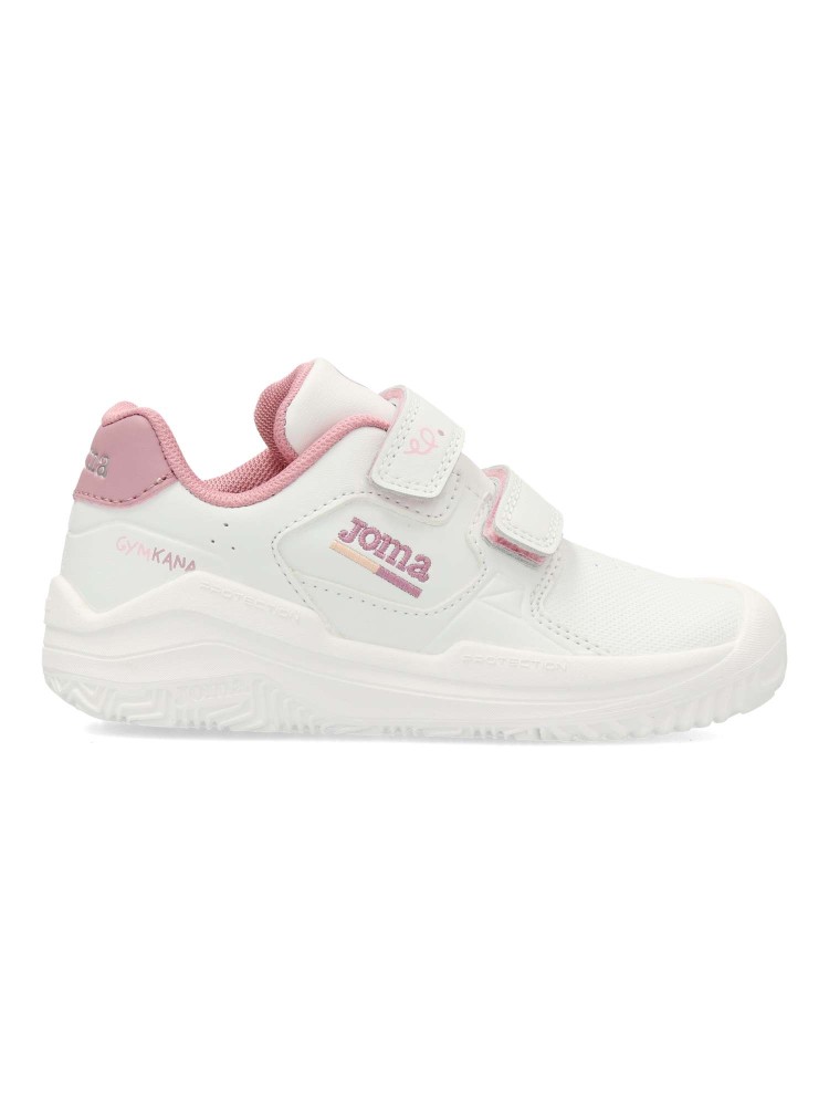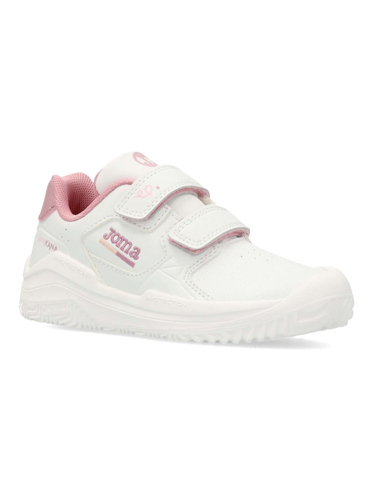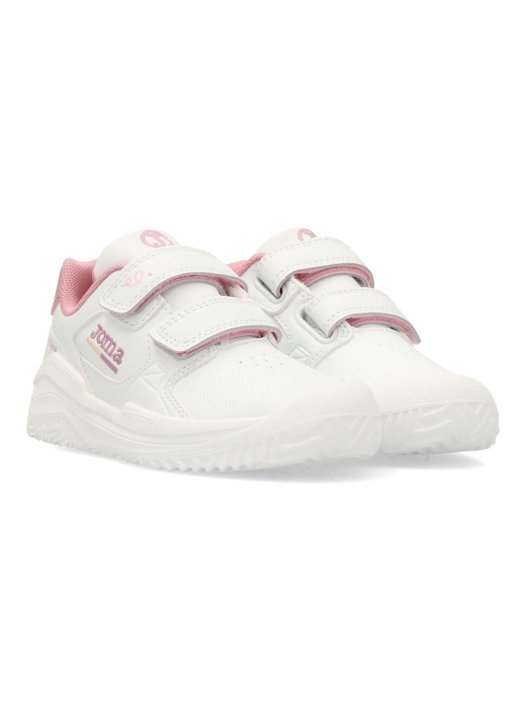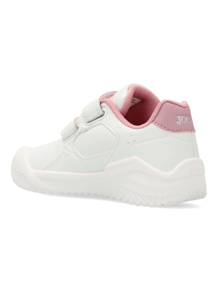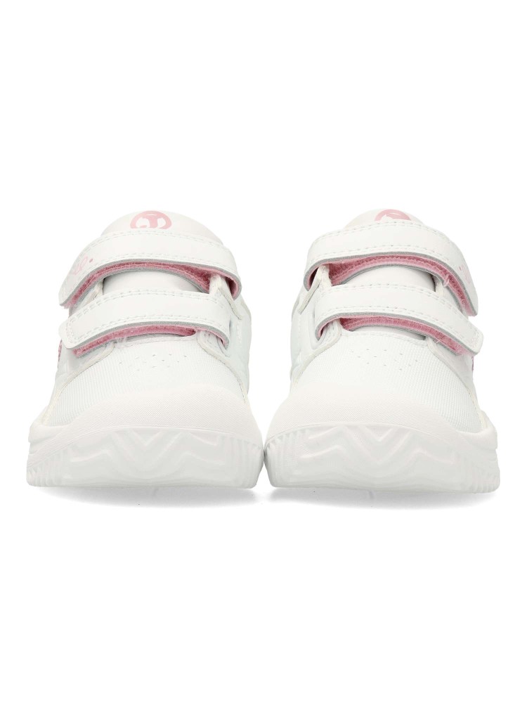 Zapatillas escolares para niño/niña. Cierre adherente. Modelo cómodo para uso diario. Reforzado para cualquier tipo de juego. Fabricado en piel sintética, con suela de caucho. Color blanco-rosa. Perfectas para el cole y para cualquier actividad diaria.