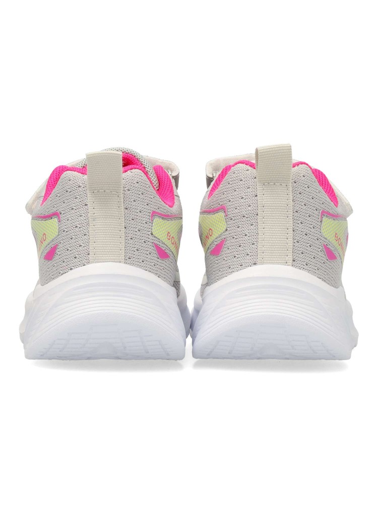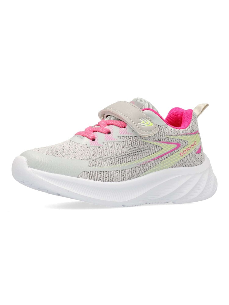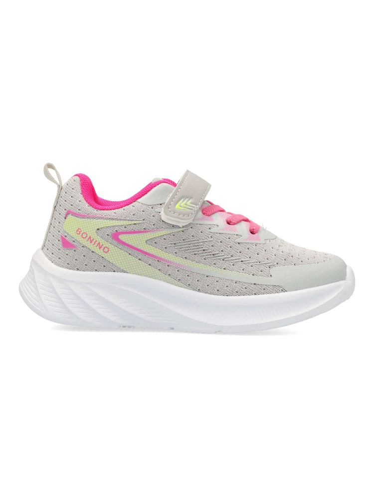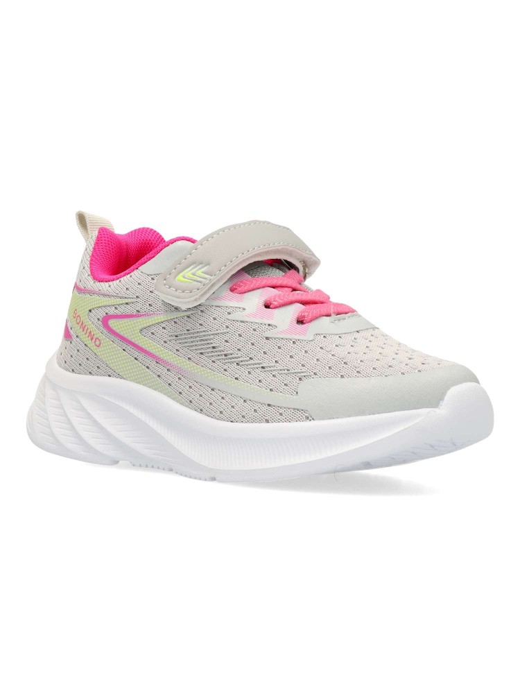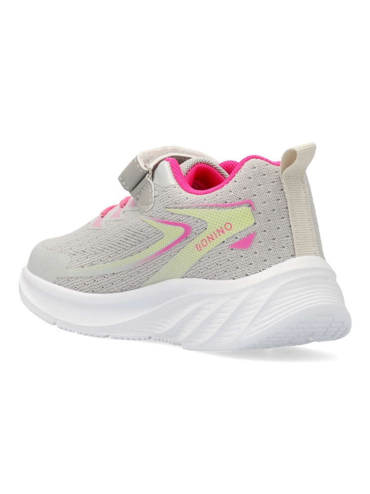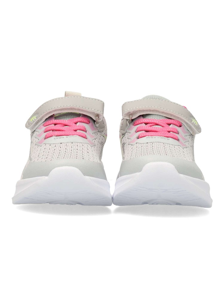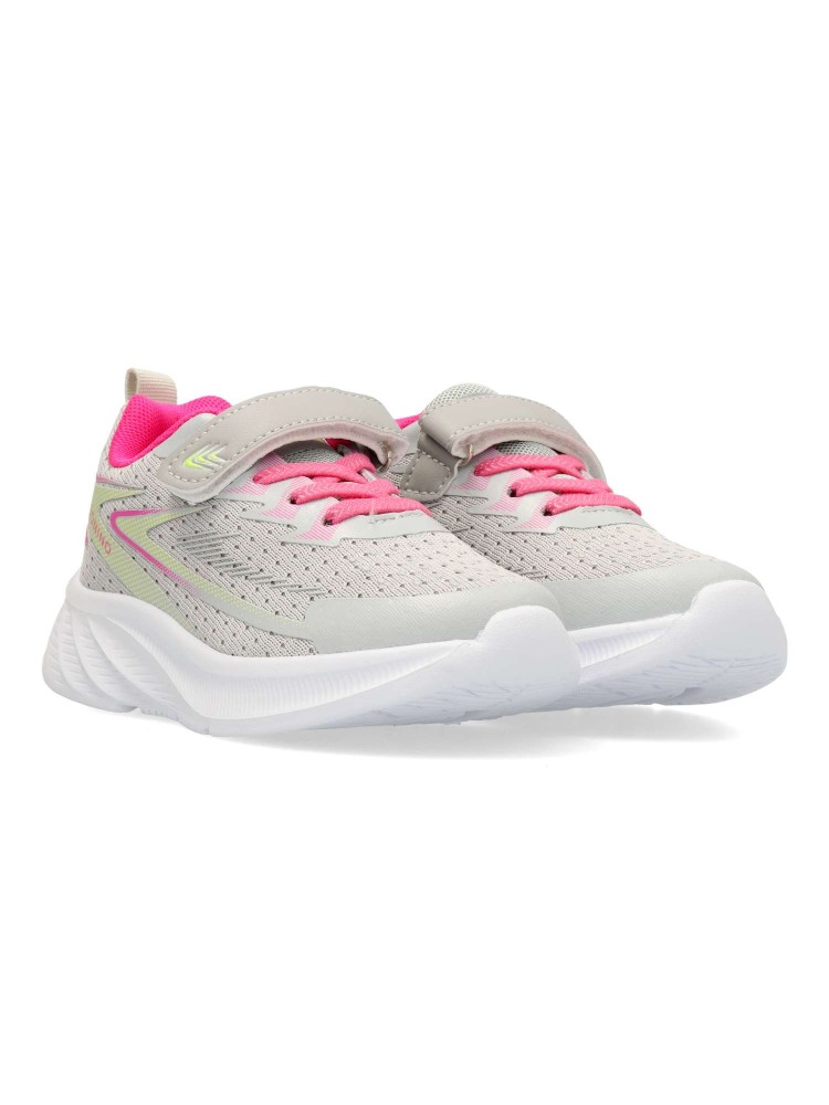 Zapatilla deportiva de niña, con tira adherente y cordón elástico. Fabricado en textil, con suela de goma ligera. Plantilla acolchada Memory Insole. Color gris-fucsia. Deportiva traspirable y cómoda, con la que los peques podrán disfrutar del día a día.