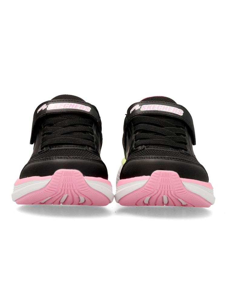 Diseñado con un compartimento oculto compatible con Apple AirTag bajo el talón de la plantilla, este modelo cuenta con una parte superior de malla y sintético, tira adherente y cordón elástico y una plantilla Skechers Air-Cooled Goga Mat™ de alto rebote.