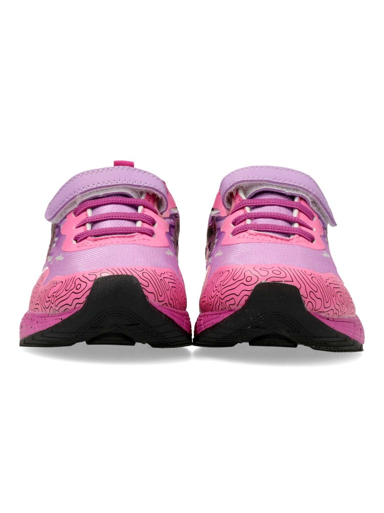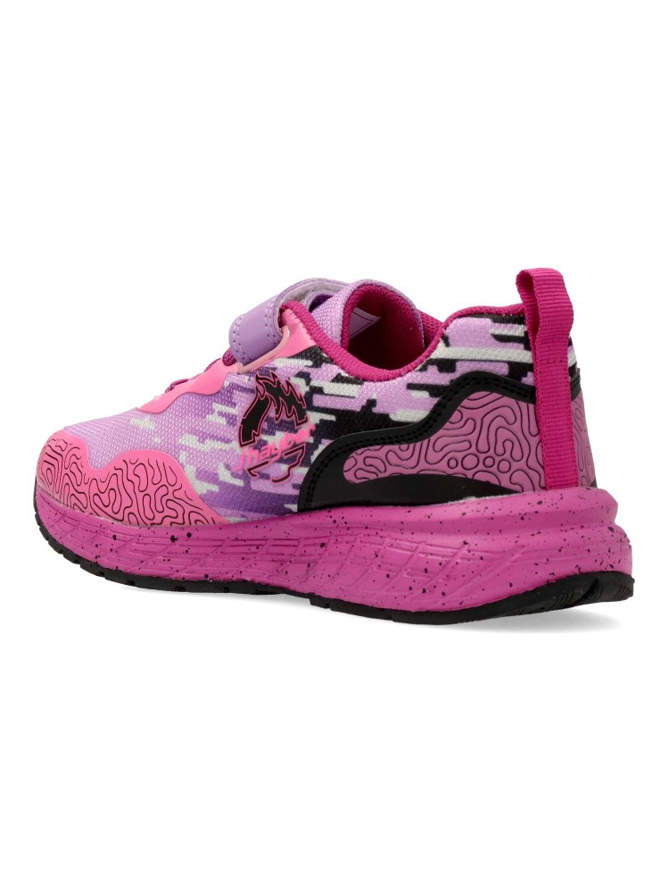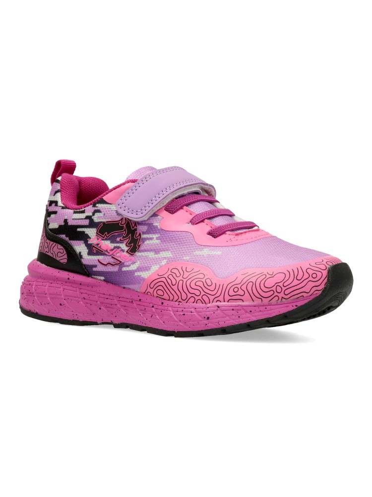 Zapatilla deportiva de niña, con cierre adherente y cordón elástico. Fabricado material sintético y textil transpirable. Suela de goma ligera y flexible. Ideal para el cole, el parque o actividades al aire libre.