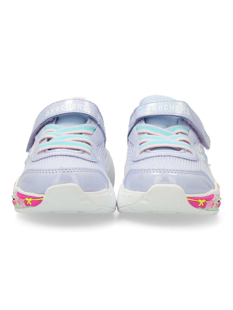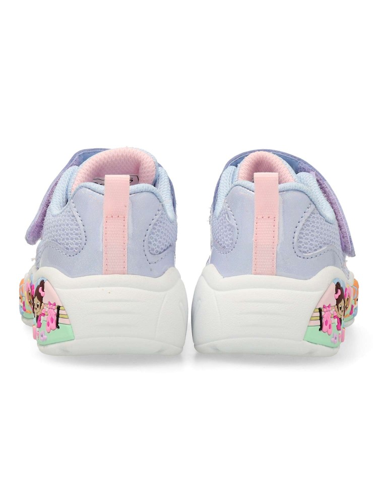 Esta zapatilla con diseño de unicornios de colores, presenta una parte superior de malla y piel sintética brillante y degradada, con cordones elásticos, correa ajustable en el empeine, así como una media suela ligera, flexible y con amortiguación.