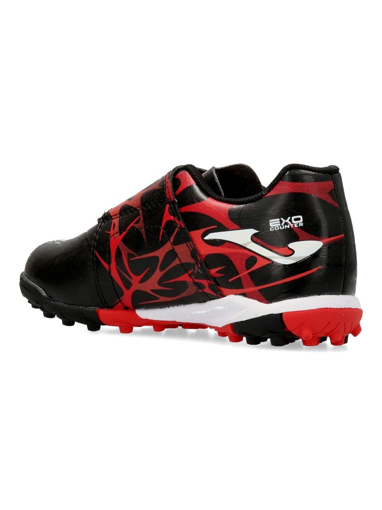 Zapatillas de fútbol para niño/niña. Zapatillas polivalentes, cualquier lugar puede ser un campo de fútbol. Modelo multitacos, fabricado en piel sintética de alta calidad y buen contacto con el balón. Cierre adherente. Suela de caucho. Color negro-rojo.