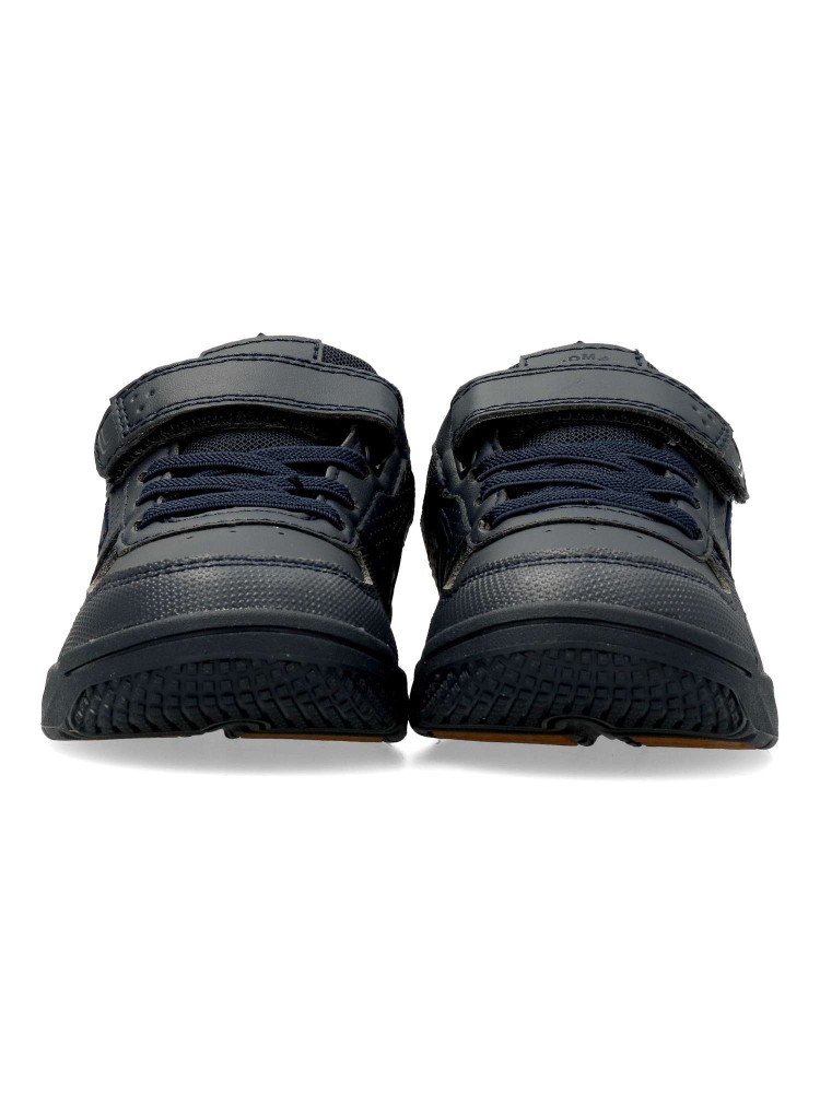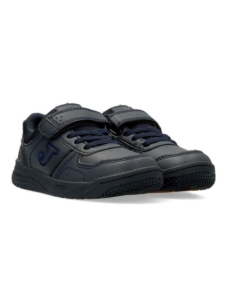 Deportiva colegial. Cierre adherente y cordón elástico. Modelo cómodo para uso diario. Reforzado para cualquier tipo de juego. Fabricado en piel sintética con suela de caucho. Color marino. Calidad testada por niños y niñas de colegios de todo el mundo.