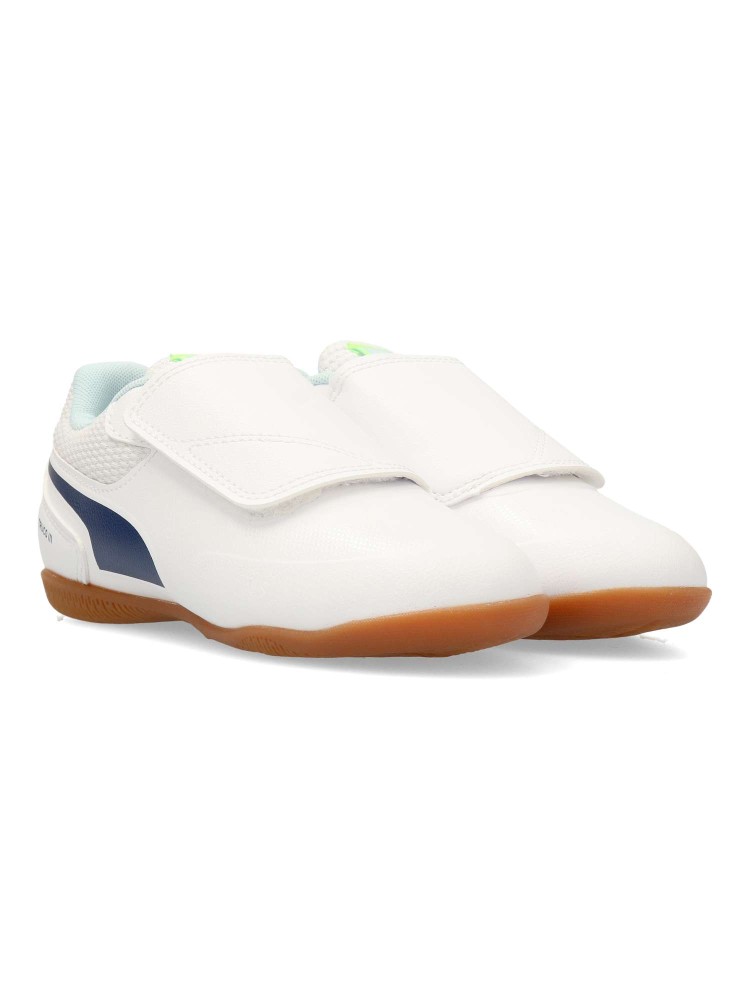 Zapatillas de futbol sala, diseñadas para entrenamientos y partidos intensos en pabellón. La suela de goma non-marking garantiza tracción. Ajuste con tira adherente ancha. Zapatillas que ofrecen máxima movilidad para regates rápidos y precisos.