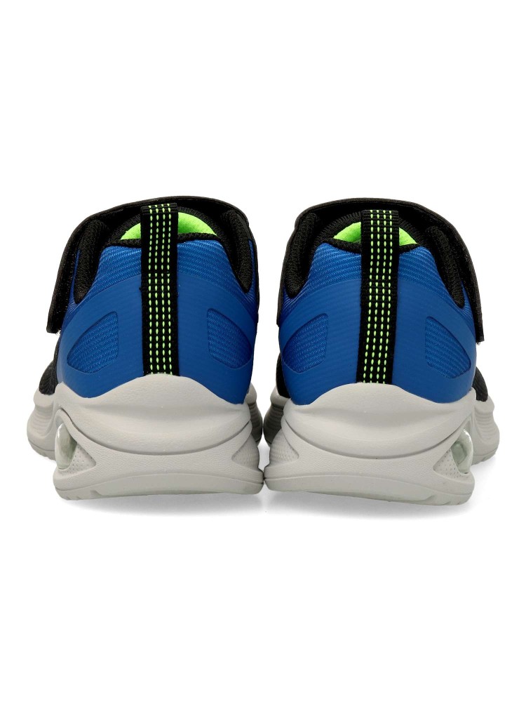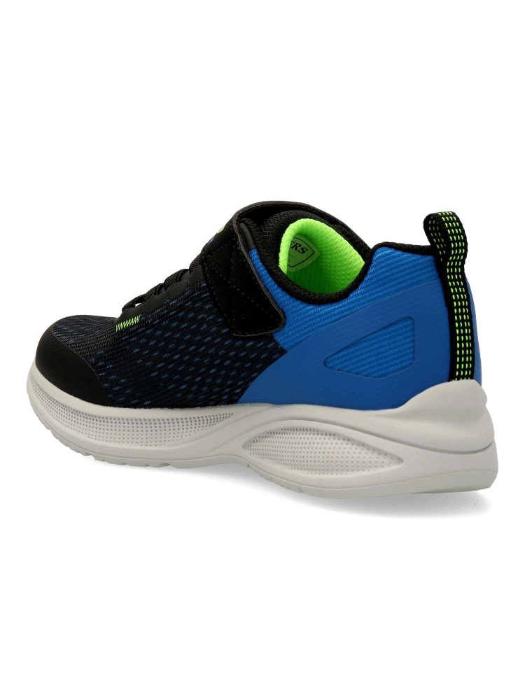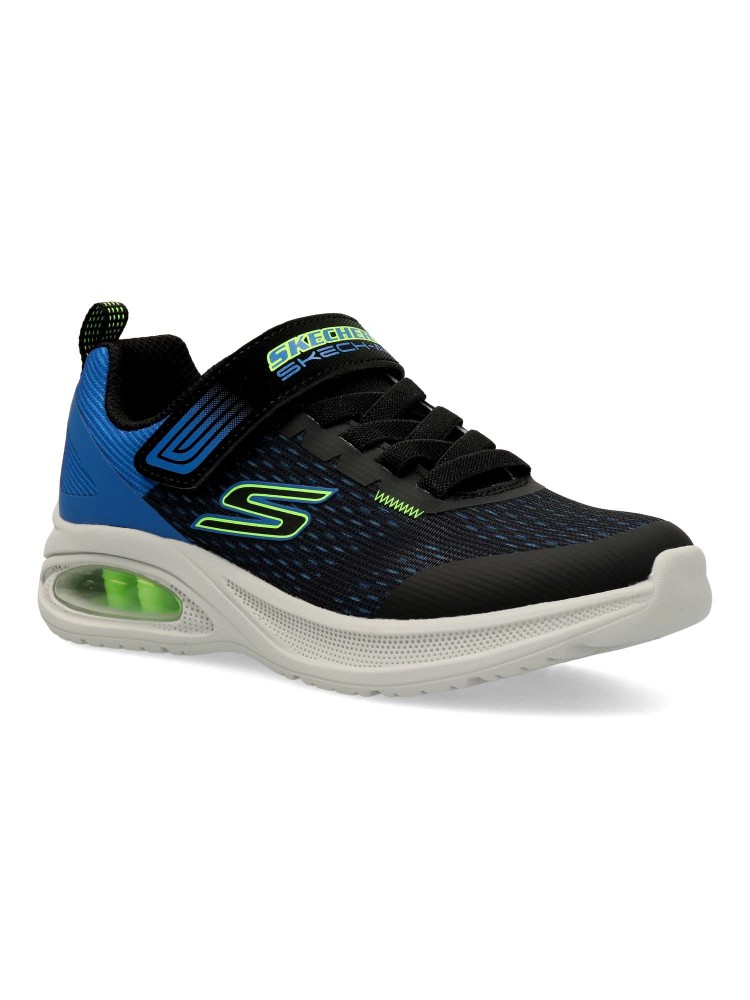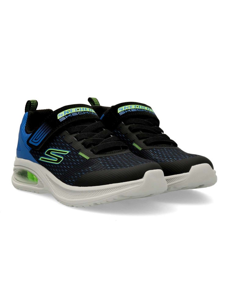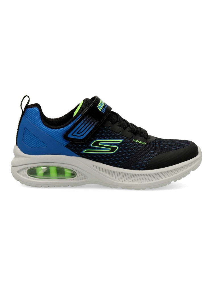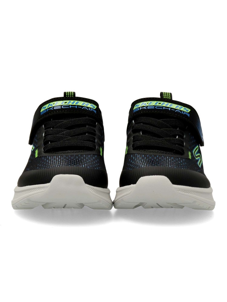 Modelo ligero con cierre Skechers Adaptive Closure. Parte superior de malla y material sintético con cordones elásticos, una correa ajustable en el empeine, una media suela Skech-Air® con cámara de aire visible y una cómoda plantilla con amortiguación.