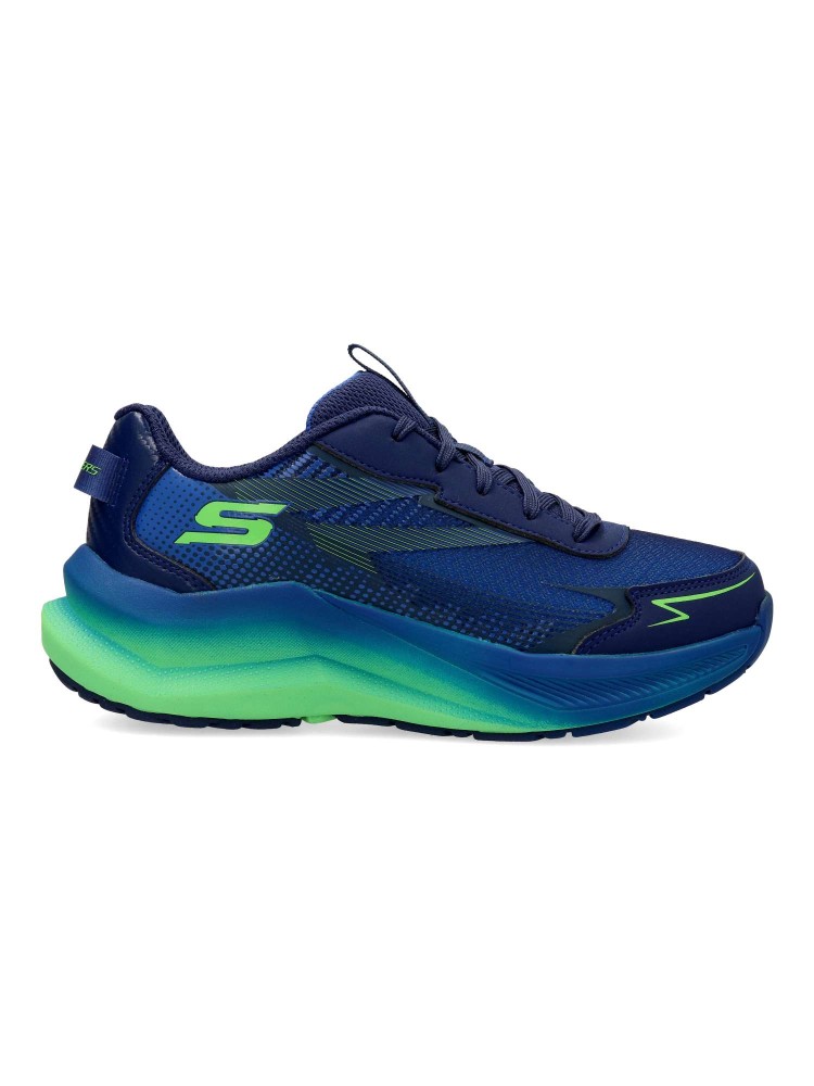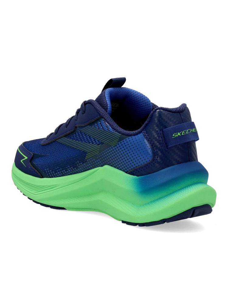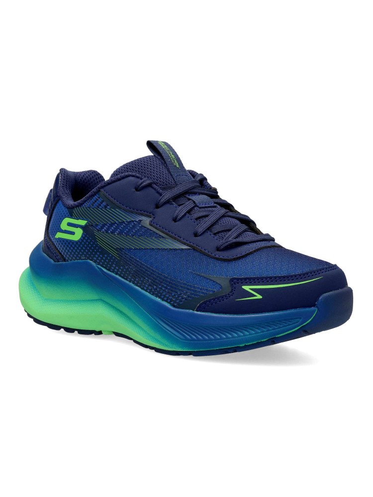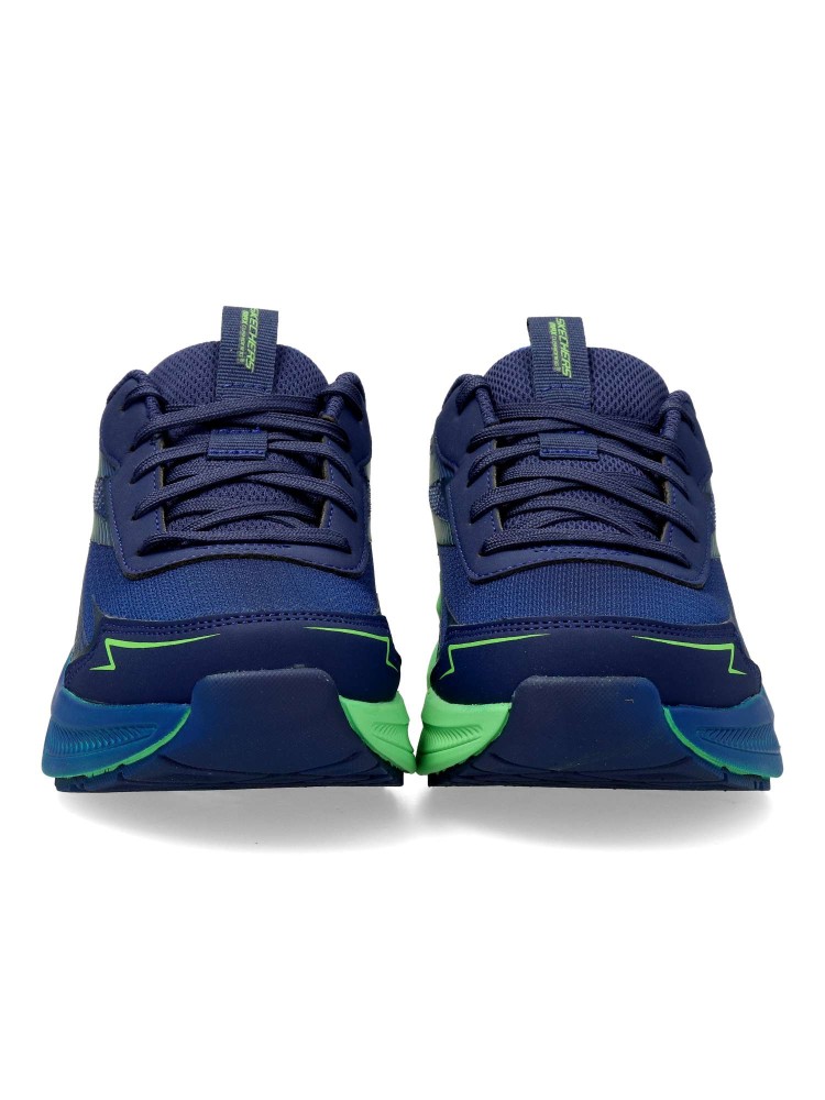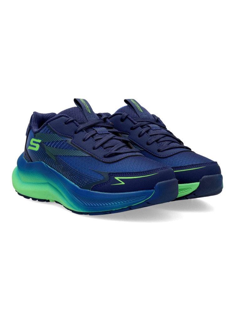 Este modelo Skechers Elite Sport™ cuenta con una parte superior de malla y capas superpuestas sintéticas con estampado impreso en 3D, cordones en la parte delantera y nuestra plantilla transpirable Air-Cooled Goga Mat™ con alto retorno de energía.