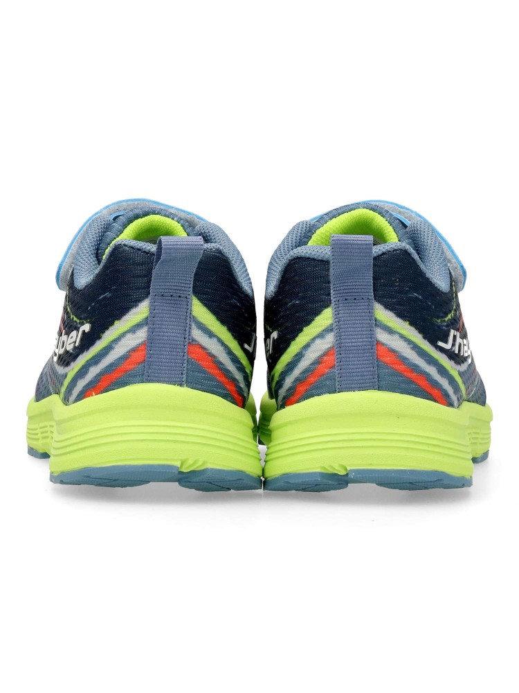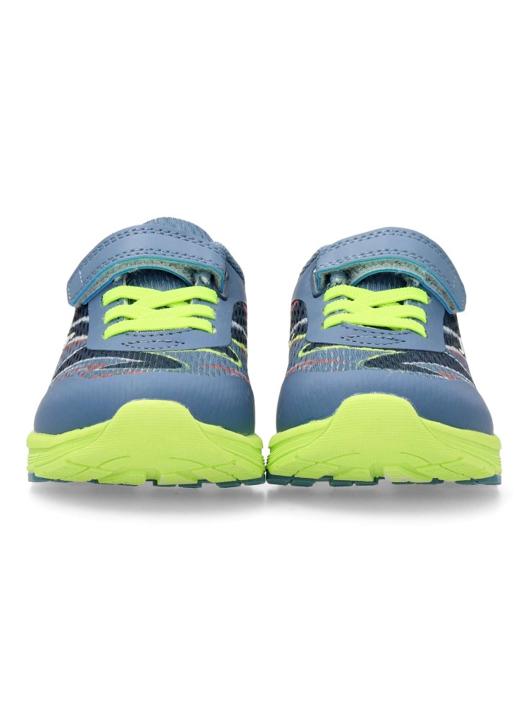 Deportiva de niño, tipo running. Cierre adherente y cordones elásticos. Fabricado en material sintético y textil, con suela de goma. Color azul. Diseño versátil, ligero, flexible y transpirable, con el que los peques no pararán de jugar.