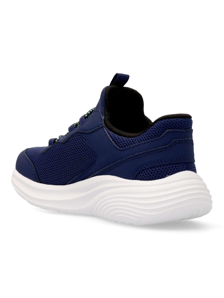Hands Free Slip-ins®: Bounder Pro. Este modelo slip-on se ha diseñado con nuestro sistema Heel Pillow™ y cuenta con una parte superior de material sintético y malla, cordones elásticos y una plantilla con amortiguación Skechers Air-Cooled Memory Foam™.
