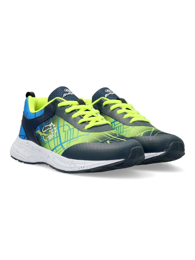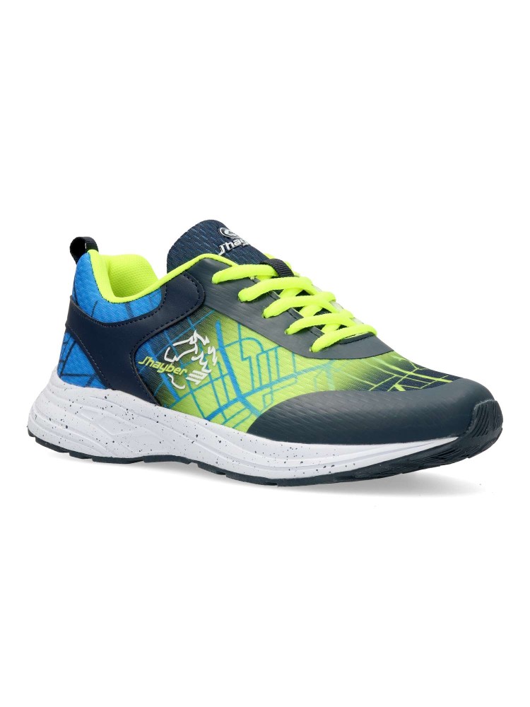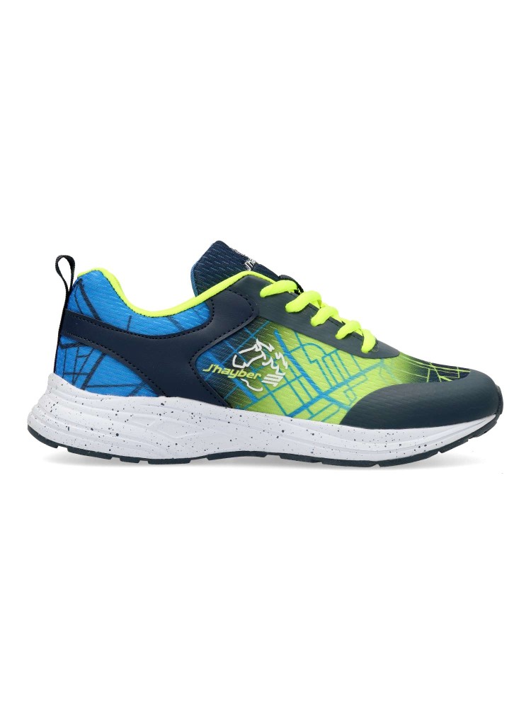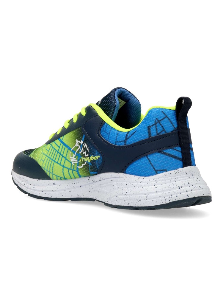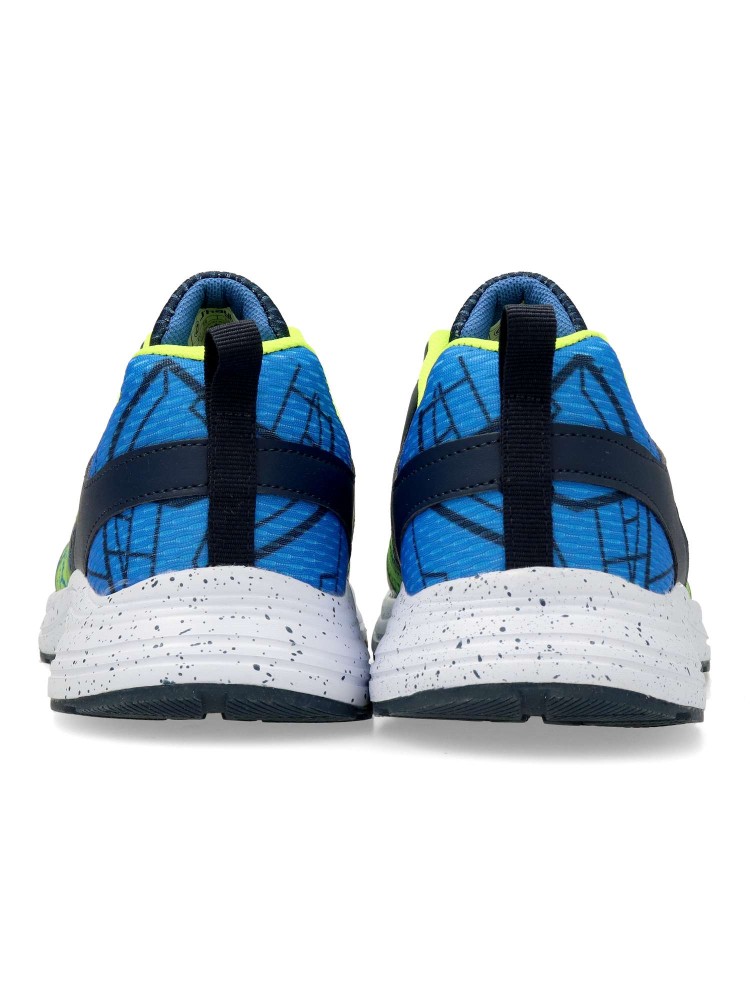 Zapatilla deportiva de niño, tipo running. Cierre de cordones. Fabricado en material sintético y textil, con suela de goma ligera y flexible. Color marino. Look moderno, perfectas para actividades deportivas y uso diario.