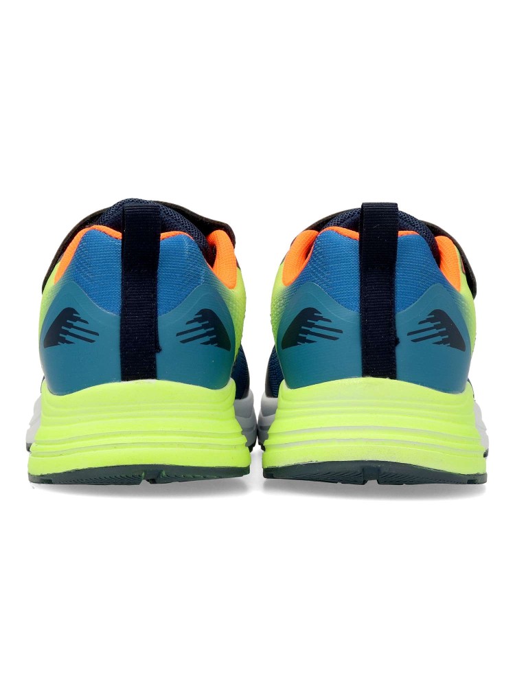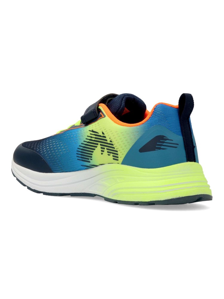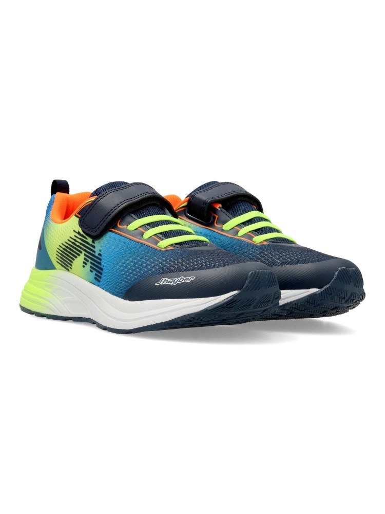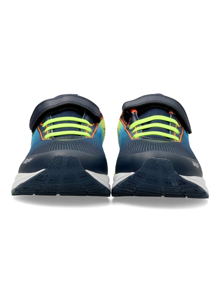 Zapatilla deportiva de niño, tipo running. Cierre adherente y cordones elásticos. Fabricado en material sintético y textil, con suela de goma ligera y flexible. Color marino-azul. Look moderno, perfectas para actividades deportivas.