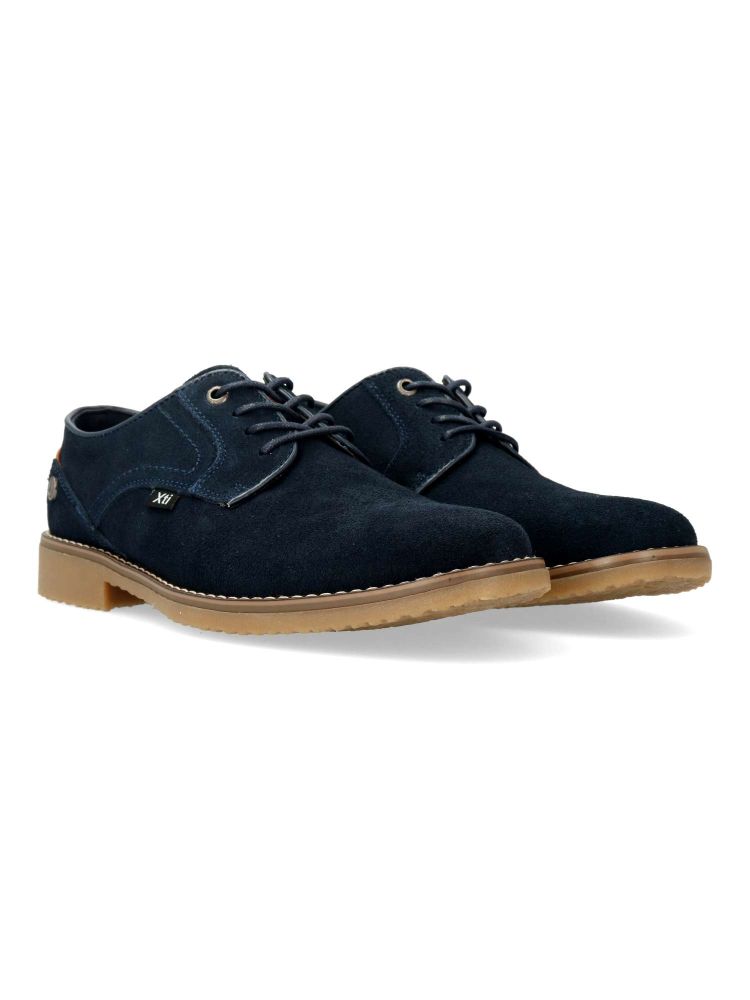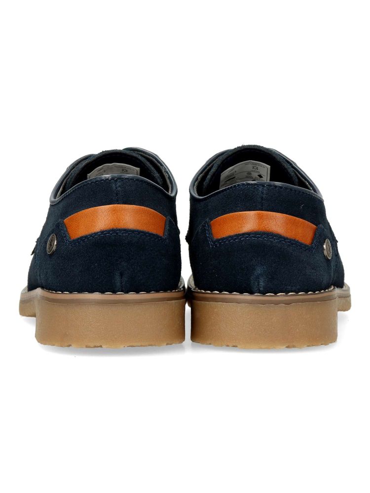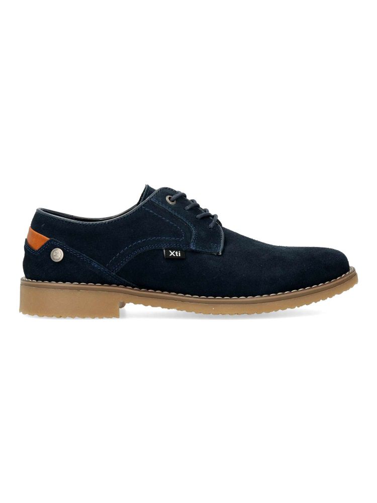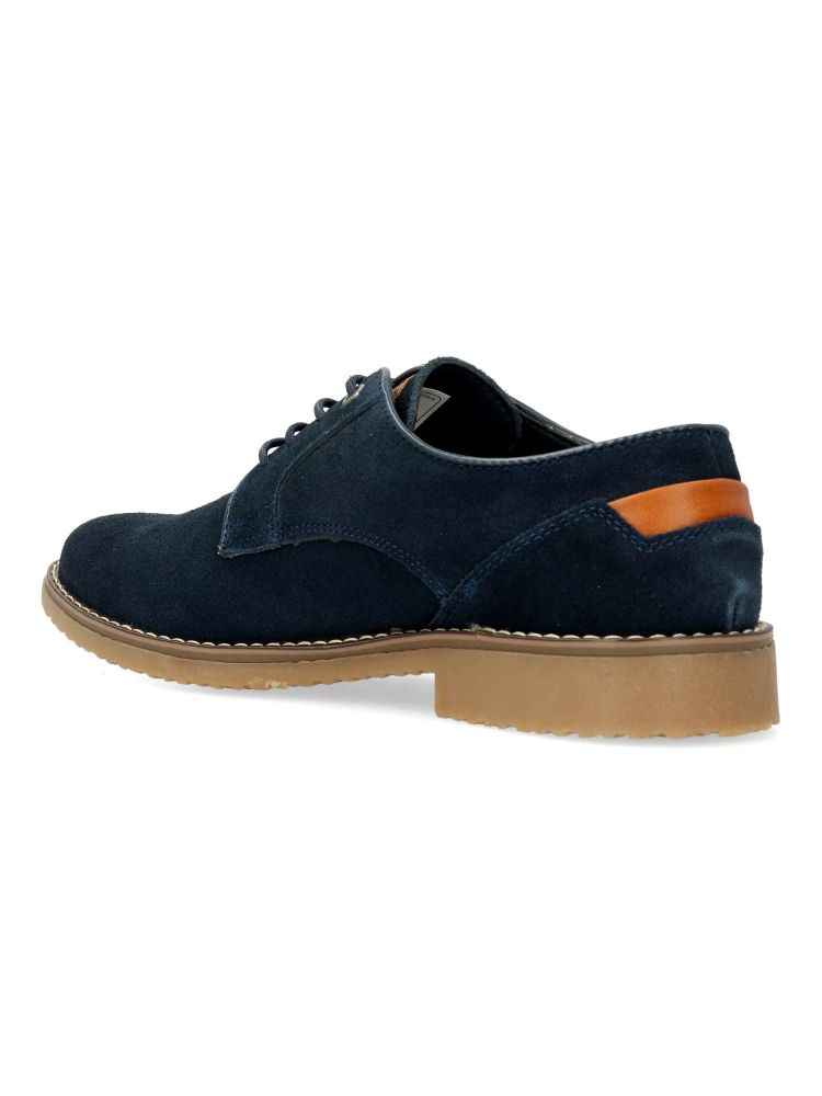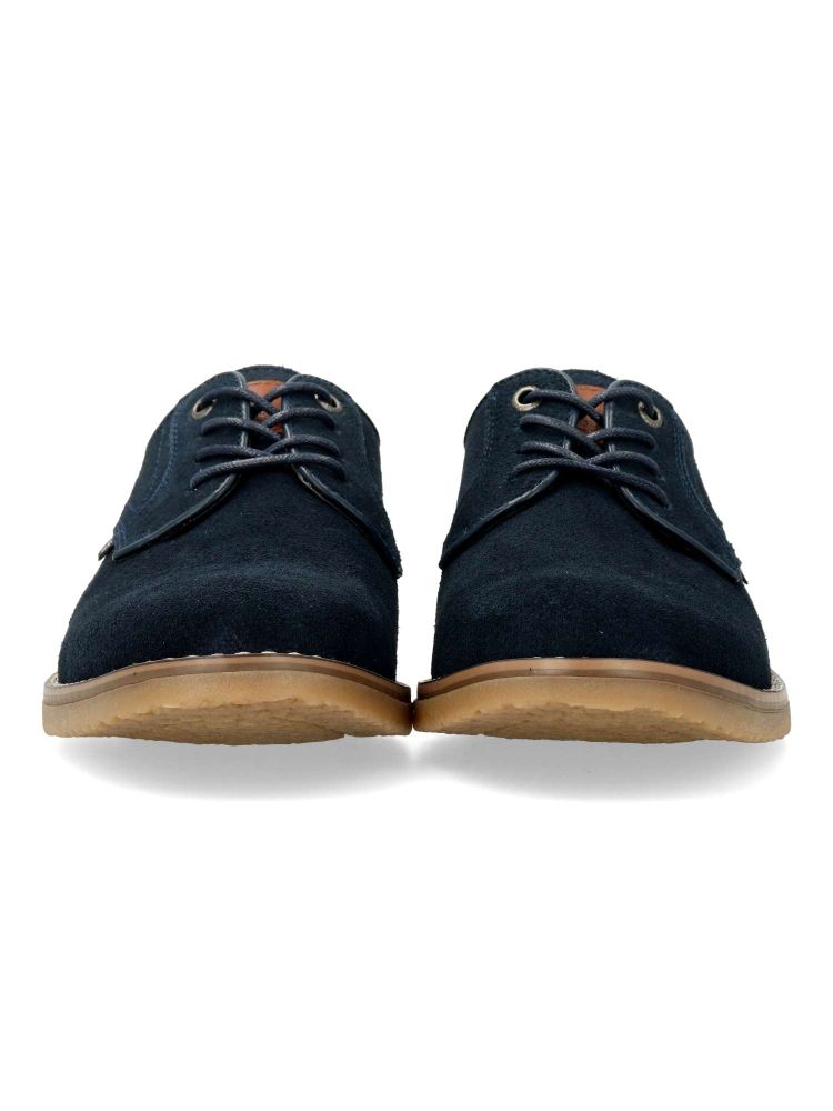 Zapato de vestir para hombre, fabricado en piel serraje suave. Suela de goma antideslizante. Plantilla acolchada y extraíble. Cierre de cordones. Color marino-cuero. Diseño elegante y versátil, fácil de combinar con tus looks de temporada.
