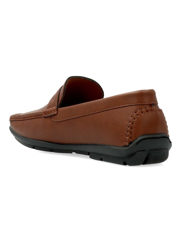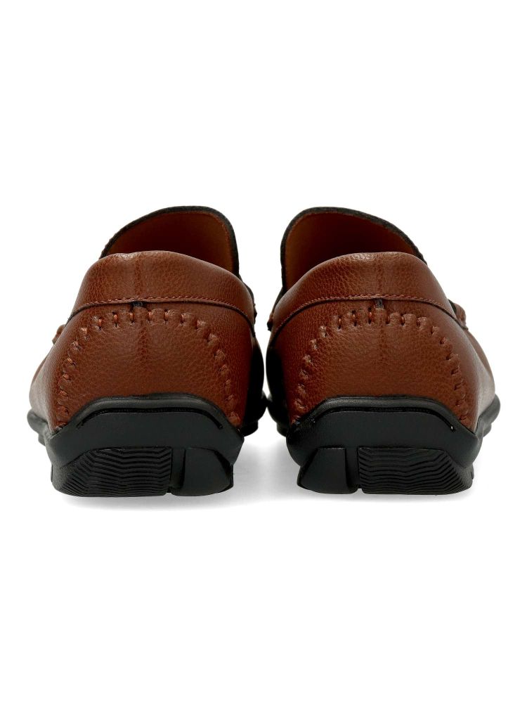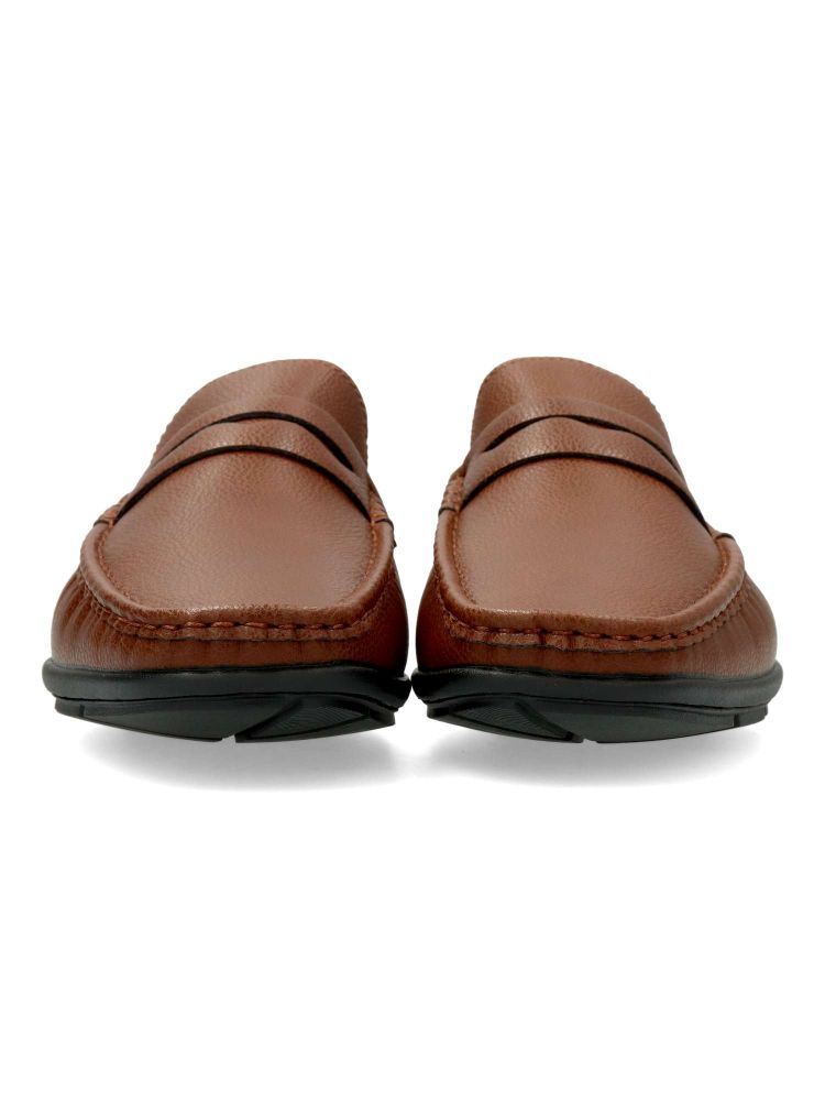 Zapato mocasín de vestir para hombre. Modelo cómodo, fabricado en piel sintética, con suela de goma ligera y flexible. Plantilla acolchada y extraíble. Disponible en color marrón. Detalle de antifaz. Un mocasín clásico, que no puede faltar en tu armario.