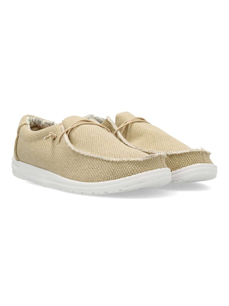 Wallabee confort de hombre, estilo casual. Cierre de cordón elástico. Modelo cómodo fabricado en textil, con suela de goma blanca. Plantilla acolchada y extraíble. Color kaki. Zapato ligero, flexible y transpirable, ideal para tu día a día.