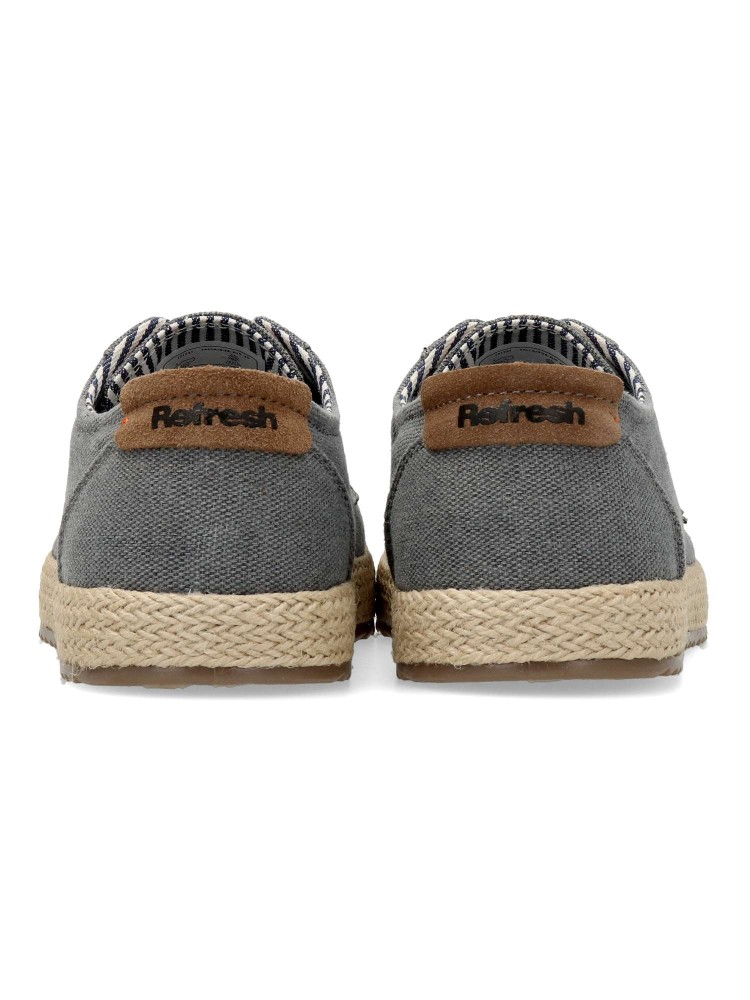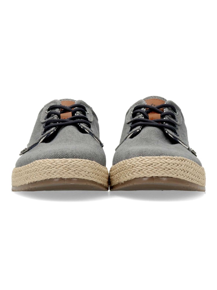 Zapato de lona con acabado desgastado. Cierre de cordones. Estilo casual cómodo, fabricado en textil. Suela de goma forrada de yute, ligera y flexible. Plantilla acolchada y extraíble. Color marino. Imprescindibles para verano. Certificado vegano.