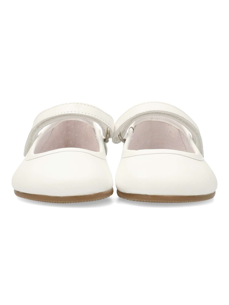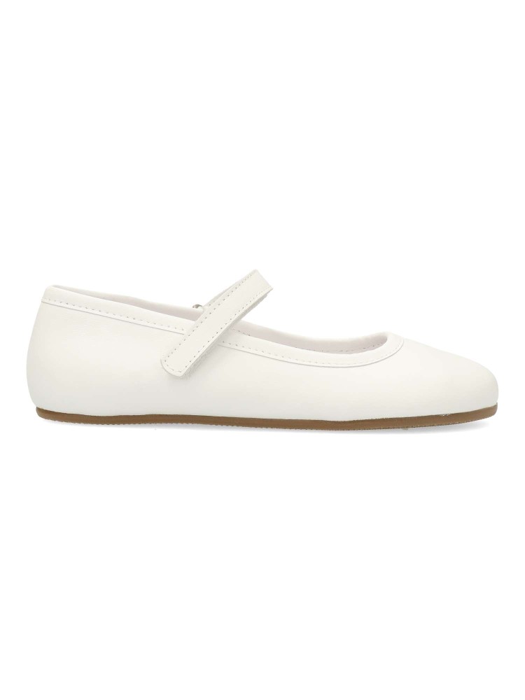 Bailarinas de niña con tira al empeine. Fabricadas en piel. Concepto barefoot: Sin refuerzos interiores, máxima flexibilidad, Plantilla extraíble, Suavidad en los materiales, Libertad en el movimiento, facilidad de calce y suela plana "Cero Drop".