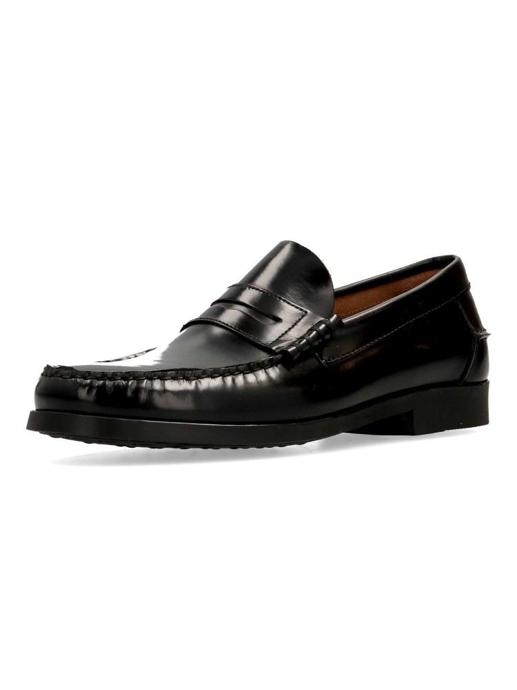 Zapato castellano de hombre. Fabricado en piel de primera calidad, con suela de goma flexible. Detalle antifaz. Plantilla de piel acolchada. Color negro. Modelo que aporta confort, máxima durabilidad, es transpirable y con interior suave. Hecho en España.