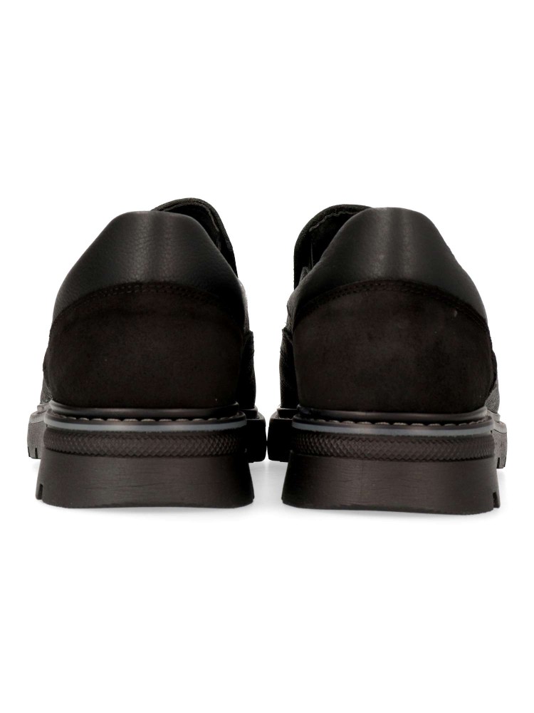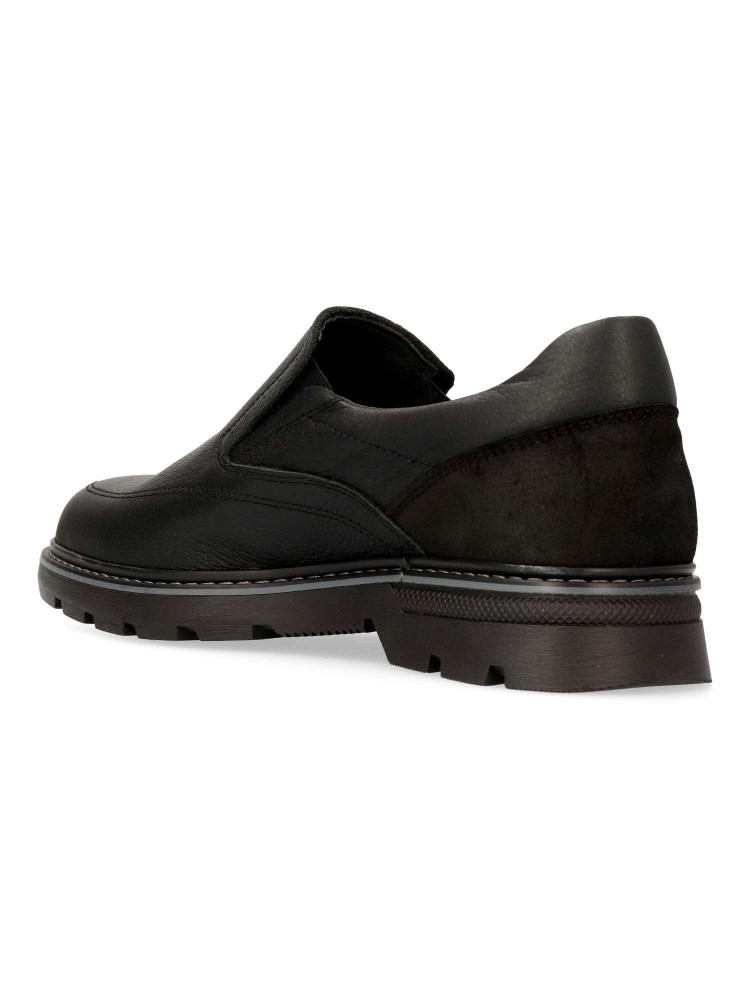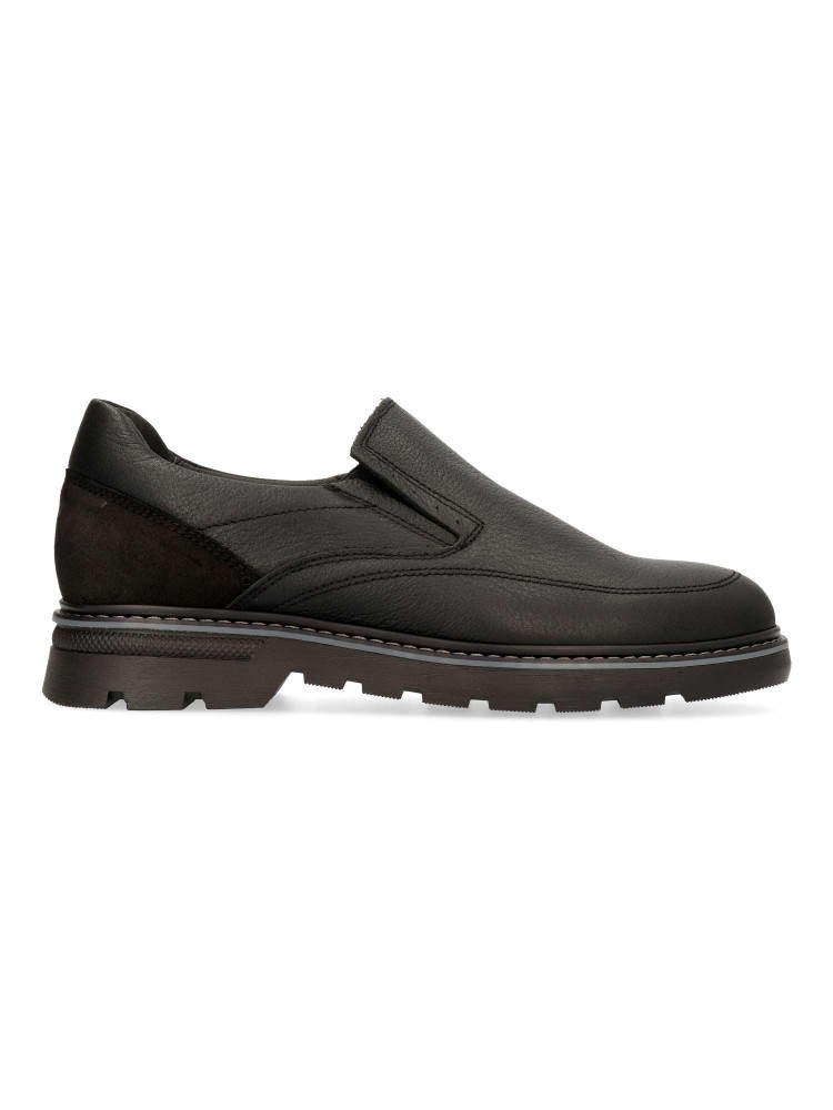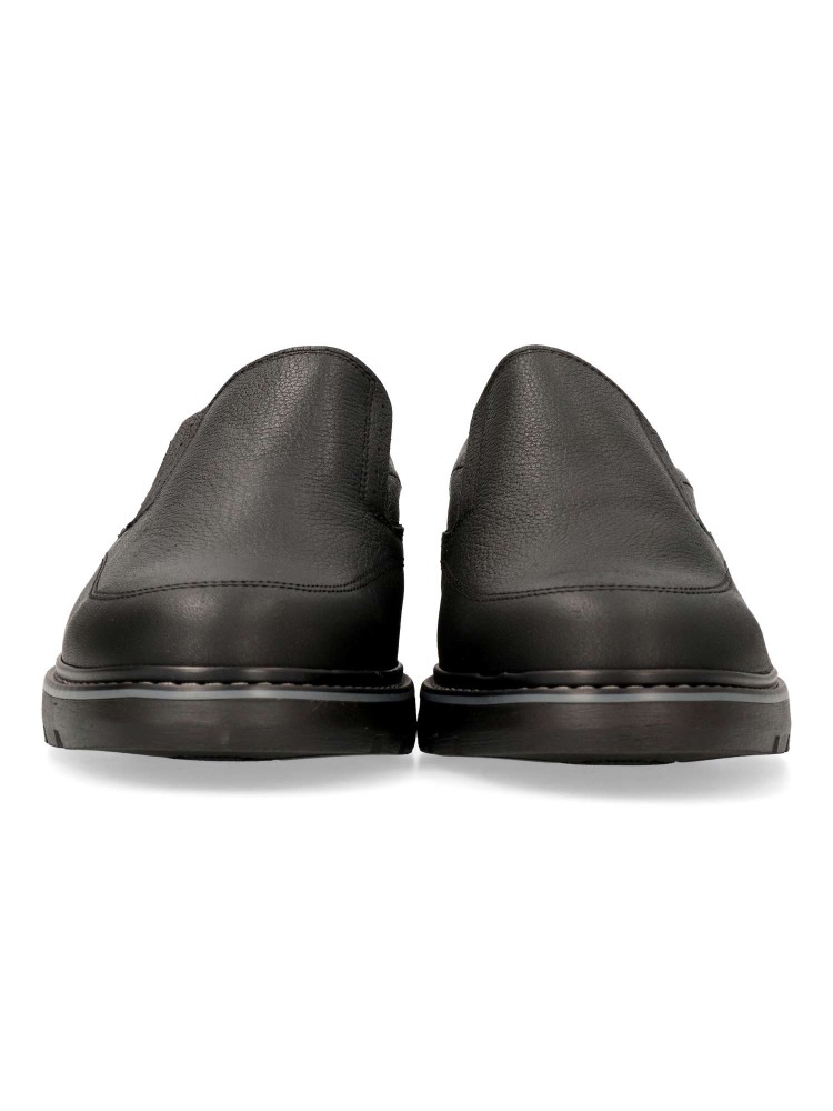 Mocasín de vestir con elásticos. Modelo cómodo, fabricado en piel suave, con suela de goma antideslizante. Plantilla acolchada y extraíble. Color negro. Un clásico de temporada, cómodo y versátil, ideal para vestir arreglado. Hecho en España.