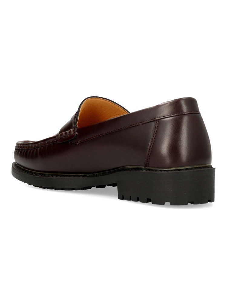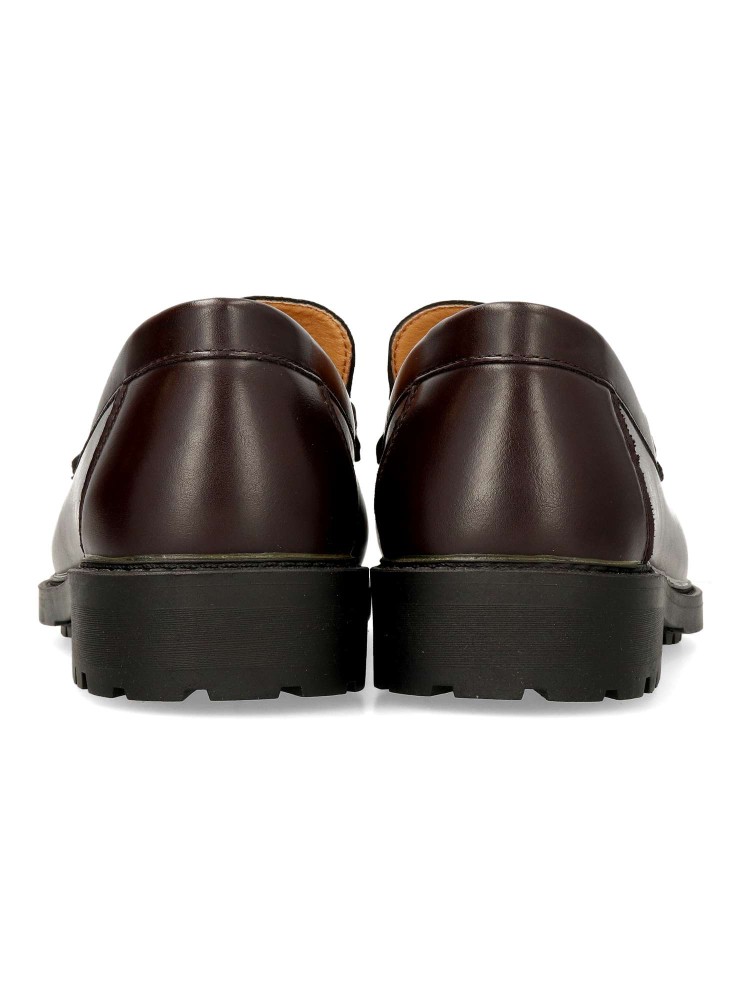 Zapato de vestir para hombre, con antifaz decorativo. Mocasín, fabricado en material sintético con suela de goma flexible. Plantillal acolchada. Color café. Diseño cómodo y elegante, ideal con tus outfits de diario y más arreglados.