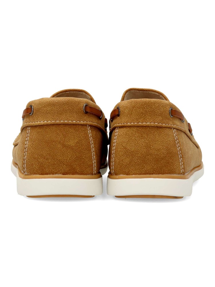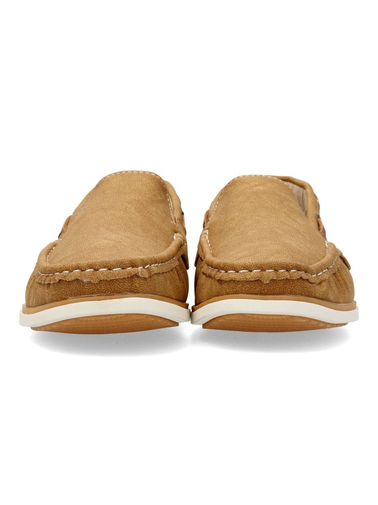 Zapato mocasín de hombre, con elásticos en laterales para mejor calce. Modelo cómodo, fabricado en material sintético, con suela de goma ligera y flexible. Plantilla de piel. Color kaki. Zapato de vestir ideal con tus looks arreglados de temporada.