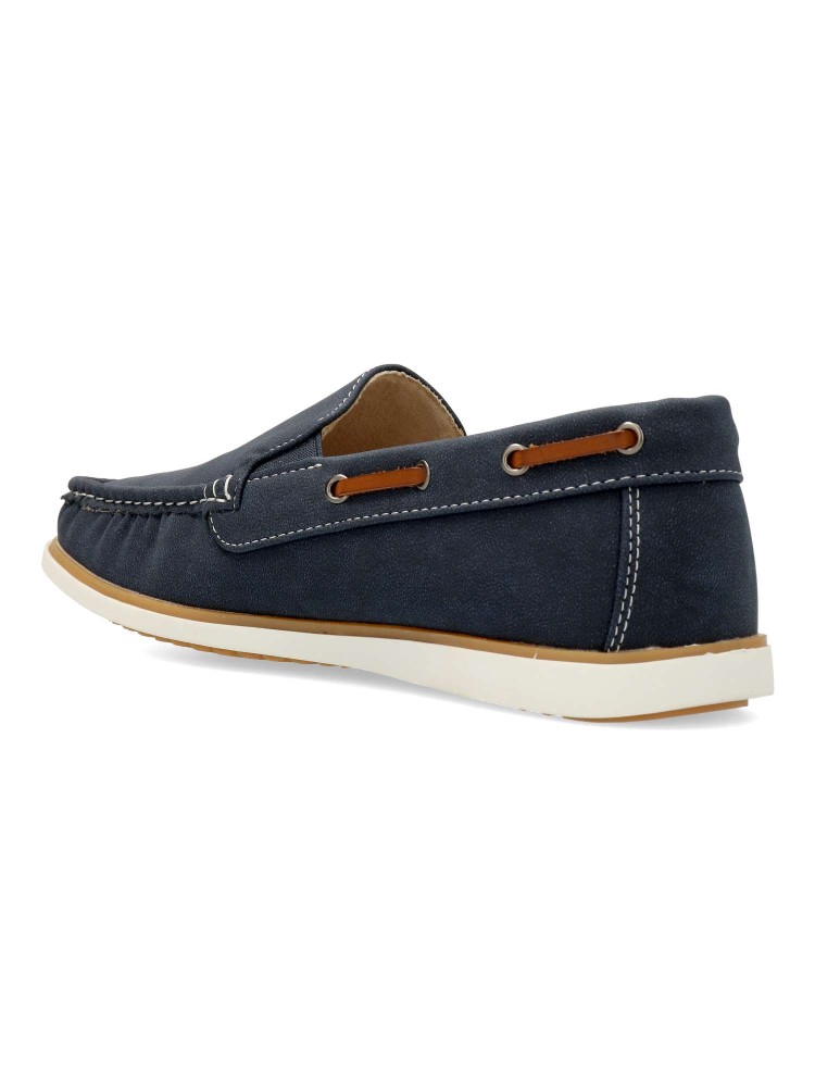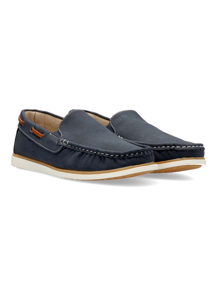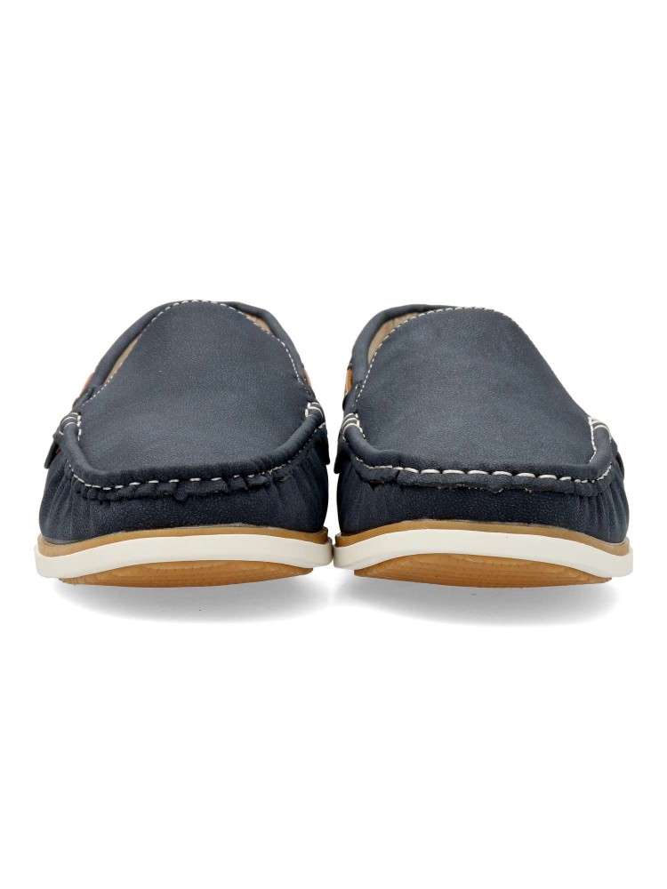 Zapato mocasín de hombre, con elásticos en laterales para mejor calce. Modelo cómodo, fabricado en material sintético, con suela de goma ligera y flexible. Plantilla de piel. Color marino. Zapato de vestir ideal con tus looks arreglados de temporada.