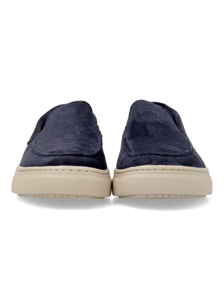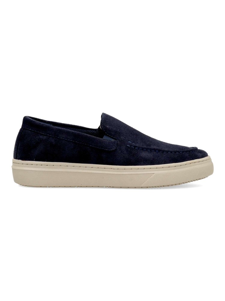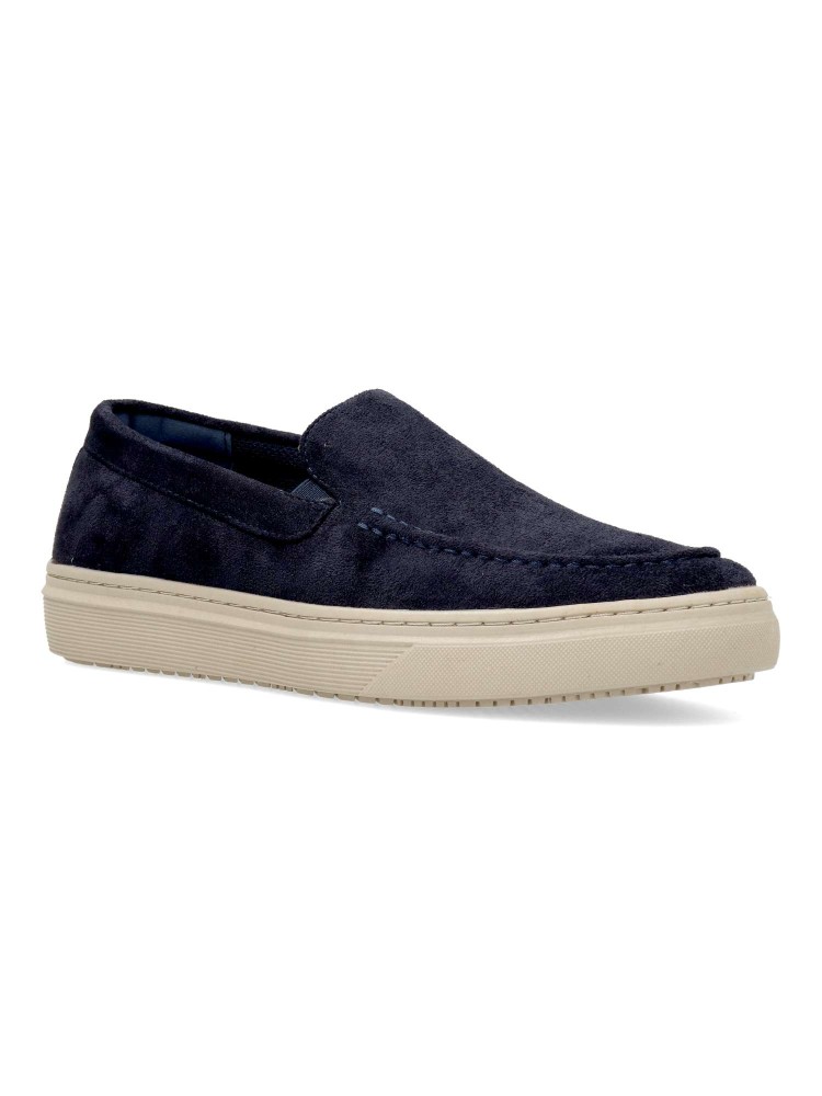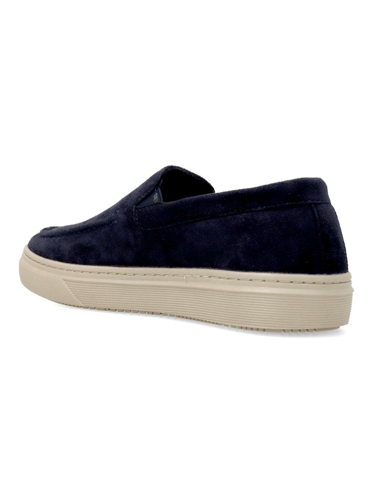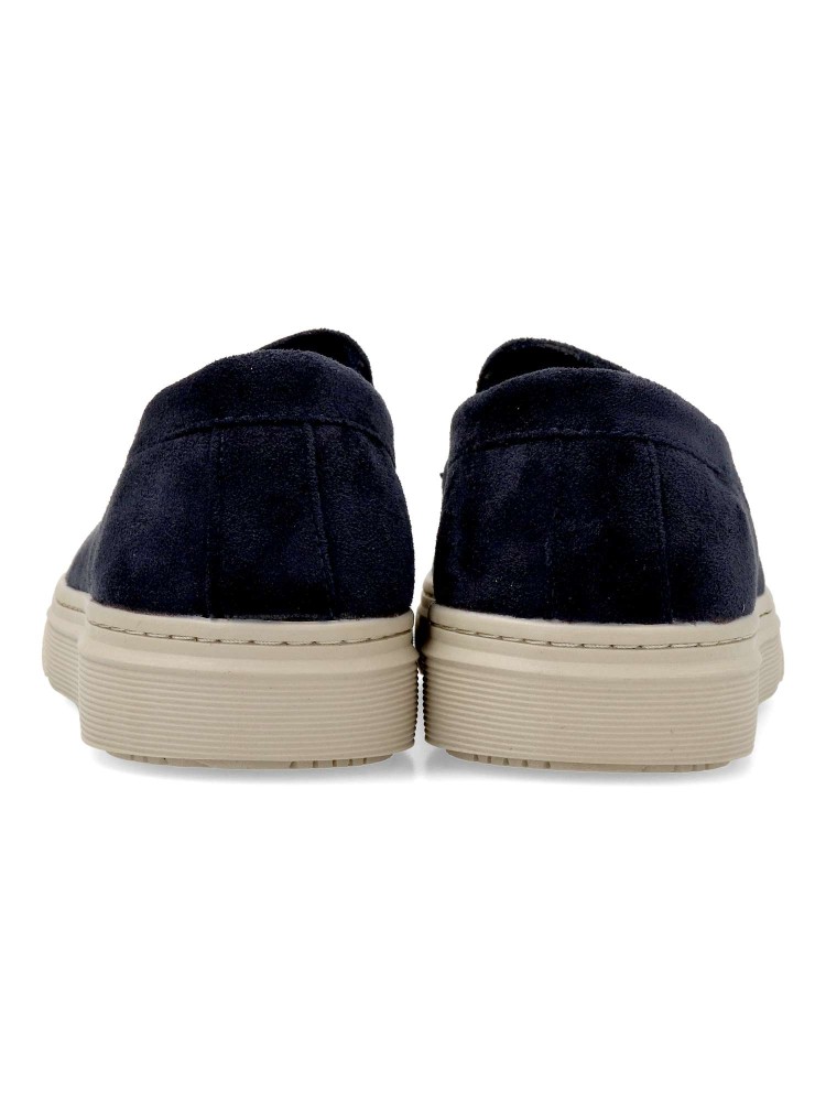 Mocasín de hombre, estilo casual. Elásticos en los laterales para mejor calce. Modelo cómodo, fabricado en antelina, con suela de goma ligera y flexible. Plantilla acolchada y extraíble. Color marino. Zapato mocasín informal. Confort para tu día a día.