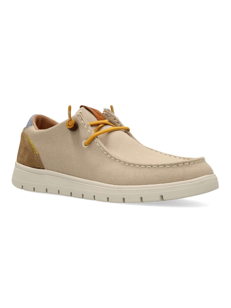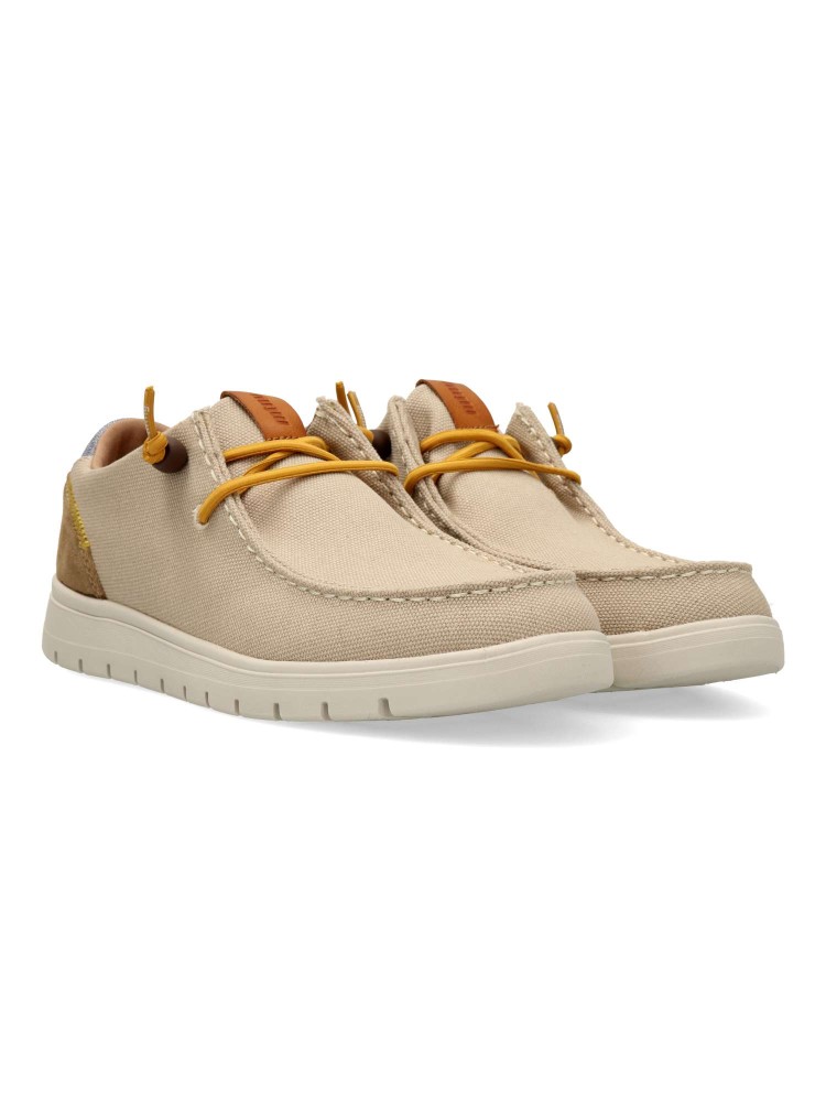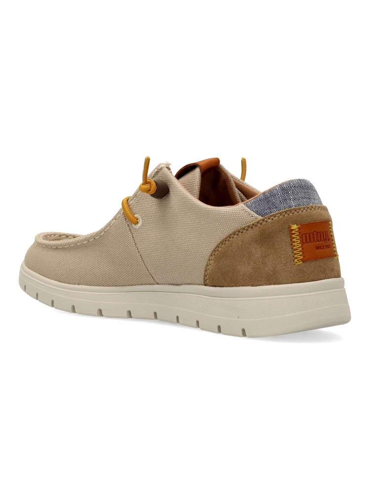 Zapato Mustang tipo mocasín color arena para hombre. La tecnología Extralight aporta ligereza, mientras que sus plantillas Starfit acolchadas aportan gran confort en cada paso. Ideal para looks de diario o escapadas de fin de semana.