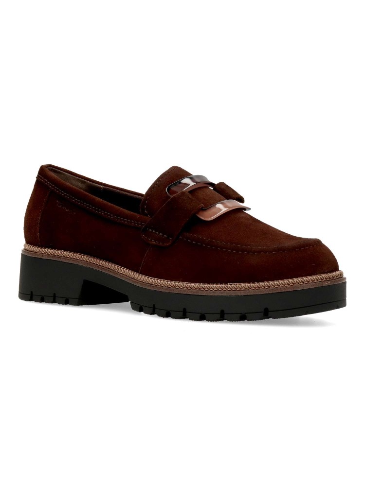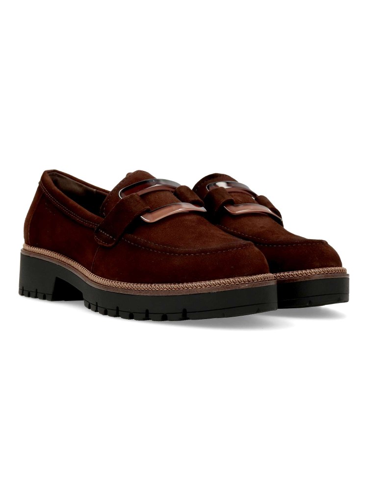 Zapato mocasín de mujer, fabricados en piel con suela de goma. Plantilla acolchada. Una hebilla decorativa añade un toque de estilo. Perfectas para paseos por la ciudad, días informales en la oficina o tardes de relax.