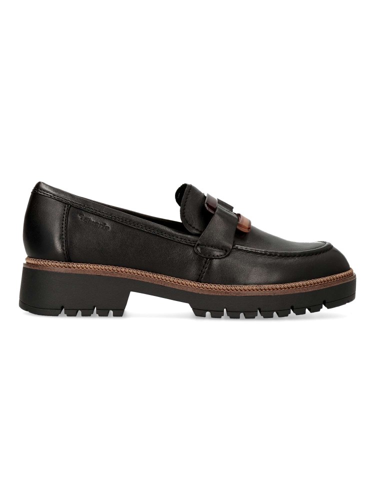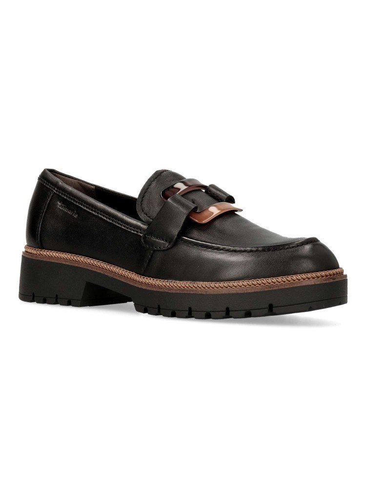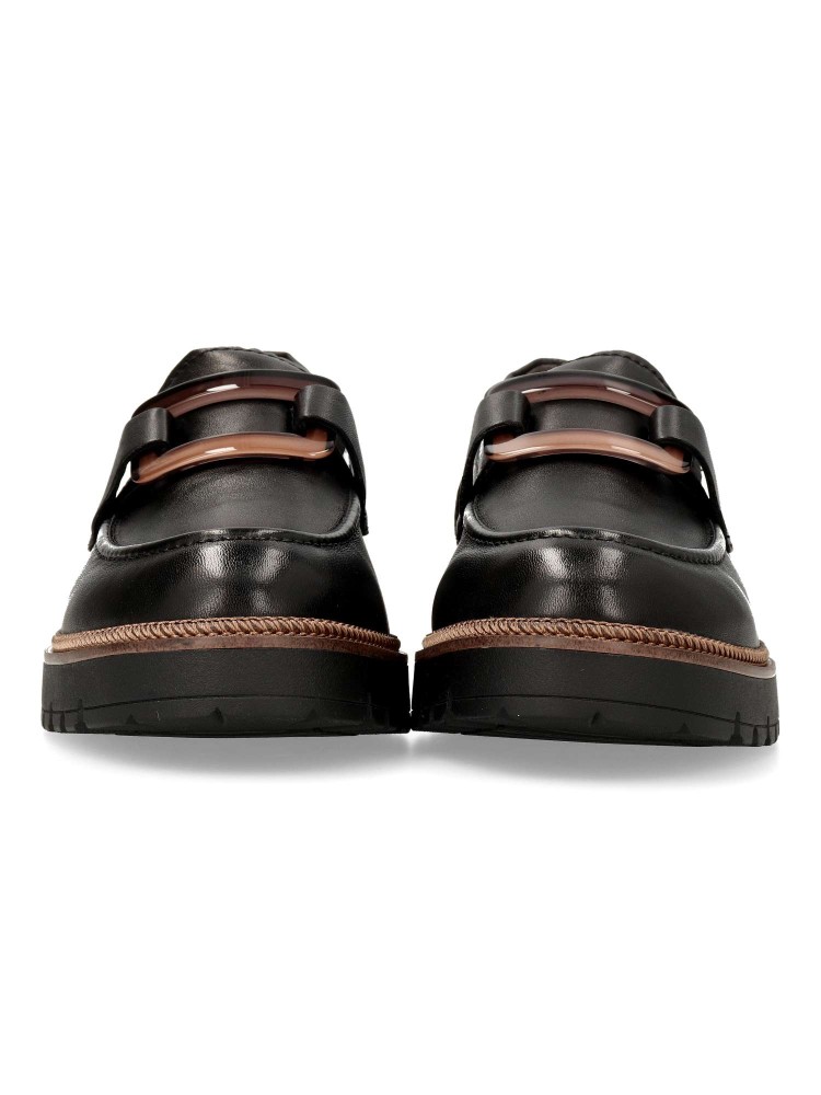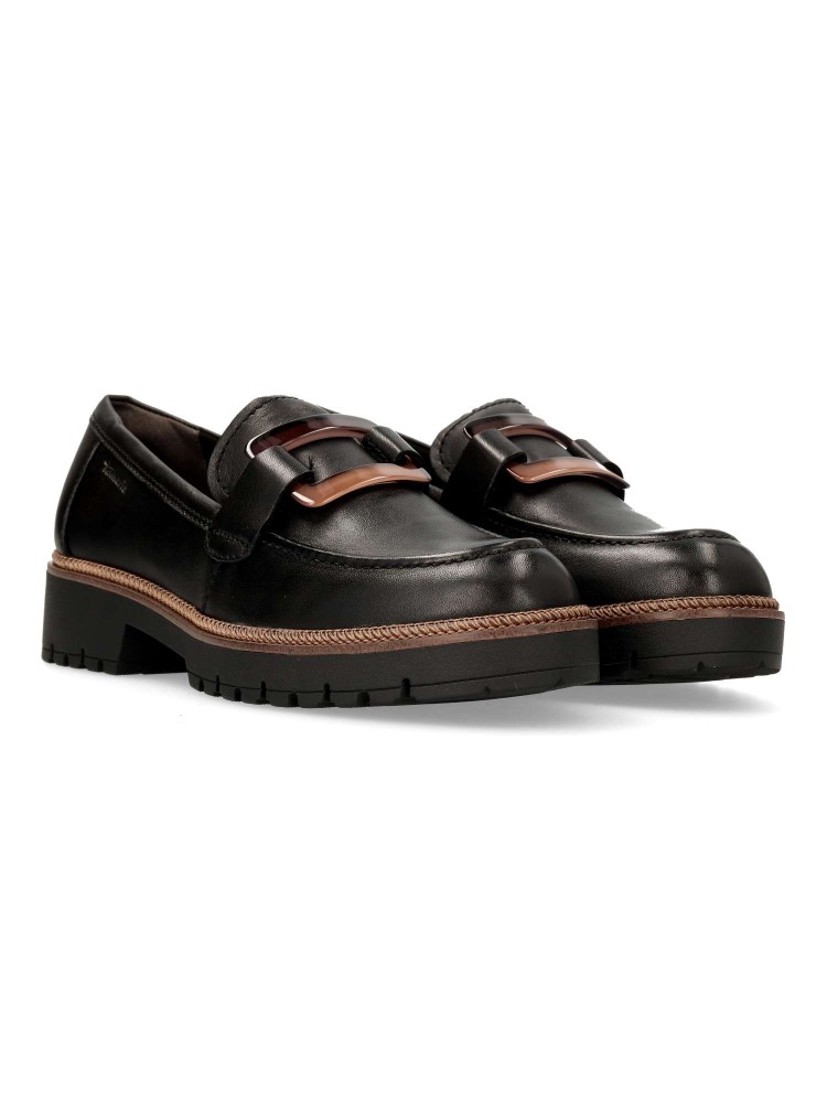 Zapato mocasín de mujer, fabricados en piel con suela de goma. Plantilla acolchada. Tacón de 3,5 cm. Una hebilla decorativa añade un toque de estilo. Perfectas para paseos por la ciudad, días informales en la oficina o tardes de relax.