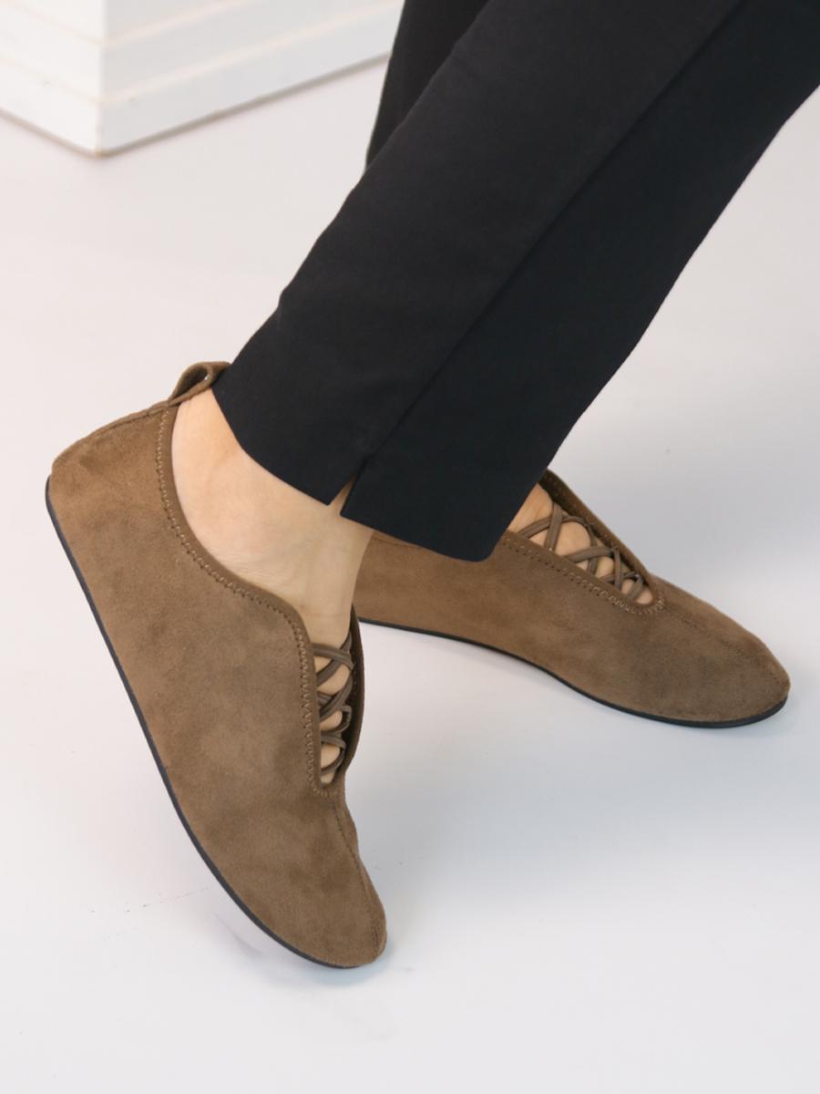 Mocasín plano de mujer. Fabricado en material sintético antelina, con suela de goma flexible. Plantilla acolchada. Color taupe. Cordón elástico al empeine, para un ajuste ideal. Diseño original y versátil, que ofrece el máximo confort para tu día a día.