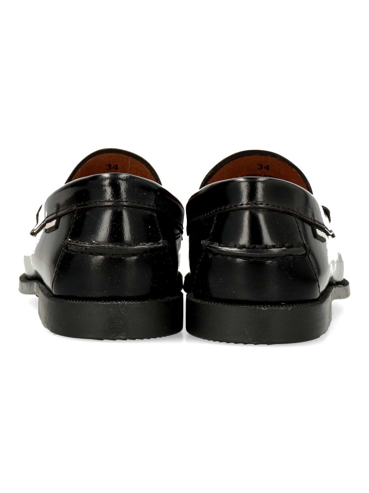 Mocasín de vestir para niños. Modelo cómodo, fabricado en piel natural, con suela de goma antideslizante. Plantilla de cuero natural. Color negro. Para looks más de vestir, son ese comodín que encaja con todo. Hecho en España.