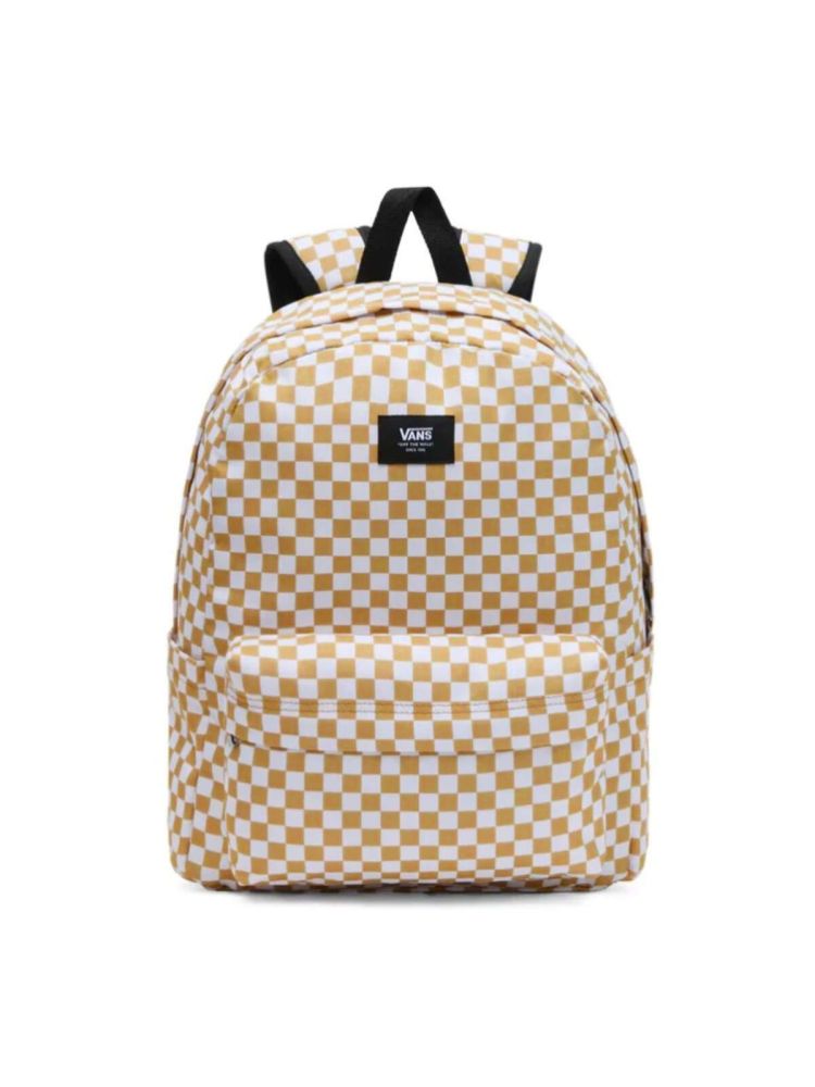 La mochila Old Skool Check, fabricada en 100% poliéster, tiene un amplio compartimento principal. Bolsillo delantero y de botella de agua. Correas acolchadas. Capacidad: 22 litros. Dimensiones: 41,9 x 32,4 x 12,1. Color beige-blanco.