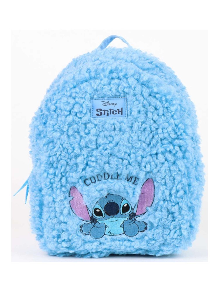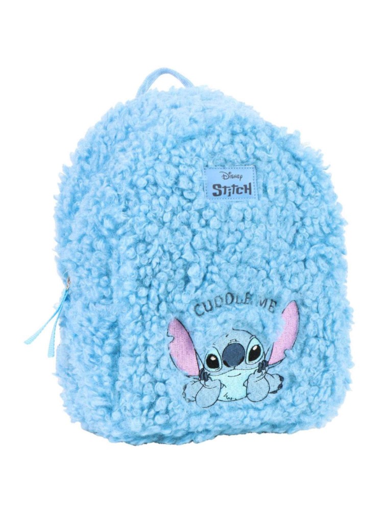 Mochila colegial borreguillo Stitch. Cierre de cremallera. Medidas: 19.0 X 24.0 X 10.5 CM