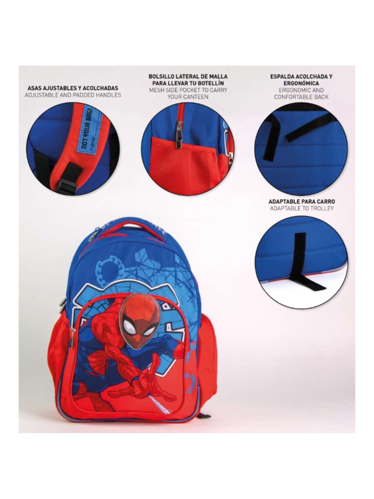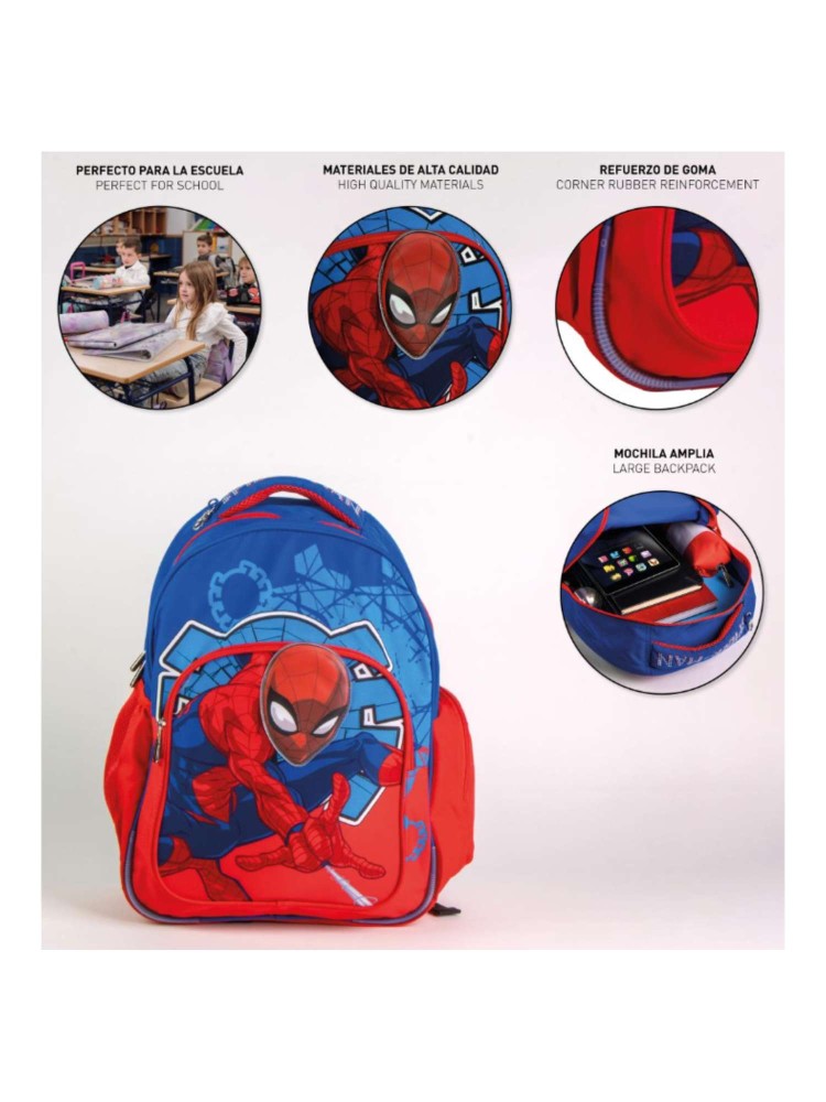 Mochila escolar mediana Spiderman. Cierre de cremallera. Color rojo-azul. 100%POLYESTER. Medidas: 32.0 X 5.5 X 45.0 CM